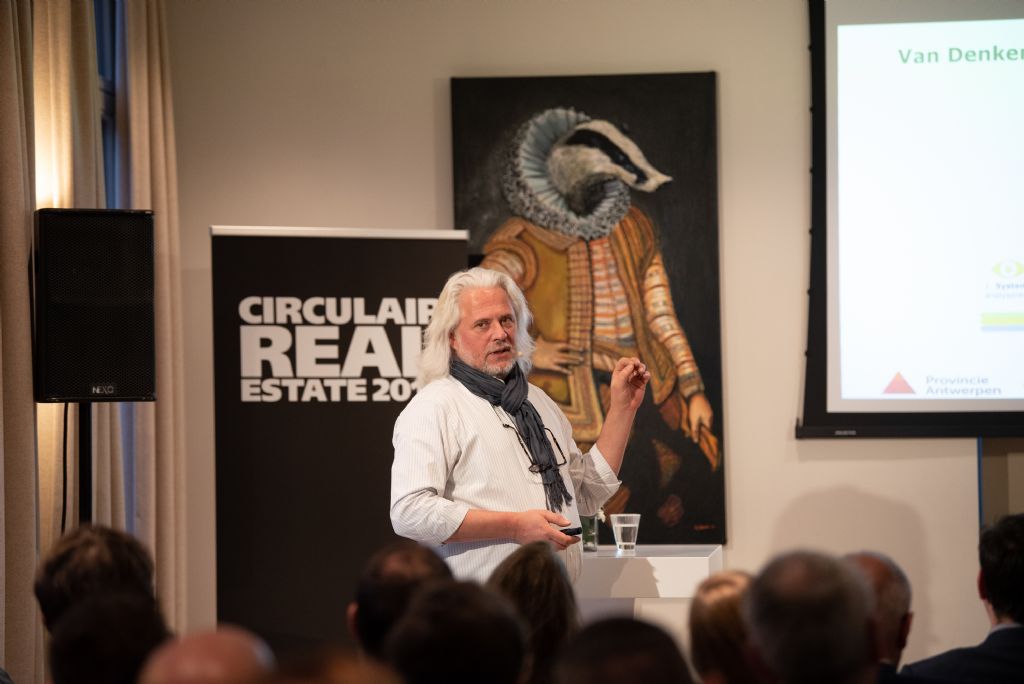 In Wilrijk organiseerde Management Producties op 28 november het seminarie Circular Real Estate 2018. Bedoeling: projectontwikkelaars, architecten, aannemers en verschillende andere actoren uit de vastgoedsector samenbrengen om ideeën uit te wisselen en elkaar te inspireren rond circulair bouwen, maar vooral om hen die woorden ook zo snel mogelijk te laten omzetten in daden. “Want het is eigenlijk al niet meer 5 voor, maar ná 12. De denkfase is voorbij, vandaag breekt de doe-fase aan”, opende Brigitte Mouligneau, transitiemanager Circulaire Economie bij OVAM het congres.