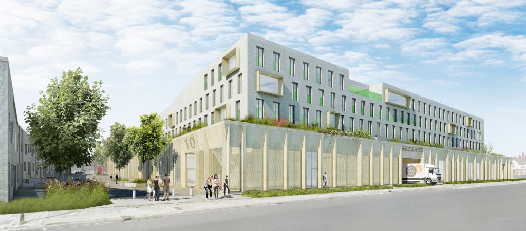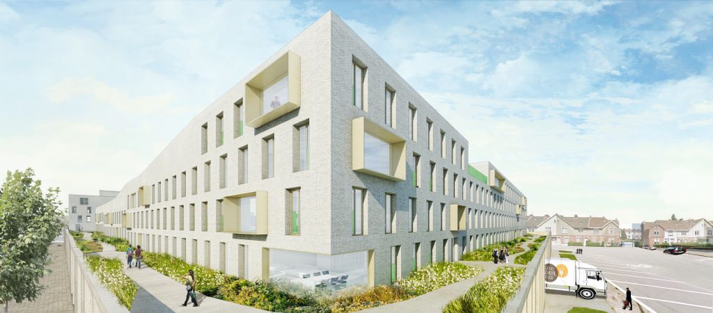 CityCampus: een gemengd project met een kmo-park voor agrovoedingsbedrijven, sociale woningen en studentenwoningen in Anderlecht. Het project is het resultaat van een samenwerking tussen citydev.brussels, de BGHM en de Anderlechtse Haard. Promotor Van Roey Vastgoed vertrouwde het ontwerp toe aan het architectenteam Crepain Binst Architecture en ORG Architecture. VK Architects & Engineers staat in voor de stabiliteit, de technieken en de akoestiek.