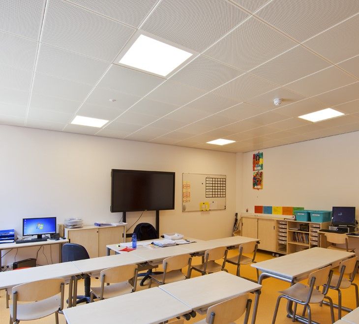 Dankzij de lichtreflectie van meer dan 80% heb je minder kunstlicht nodig. Daarbij bekom je via de perforaties in combinatie met een akoestische isolatie een performant akoestisch comfort.