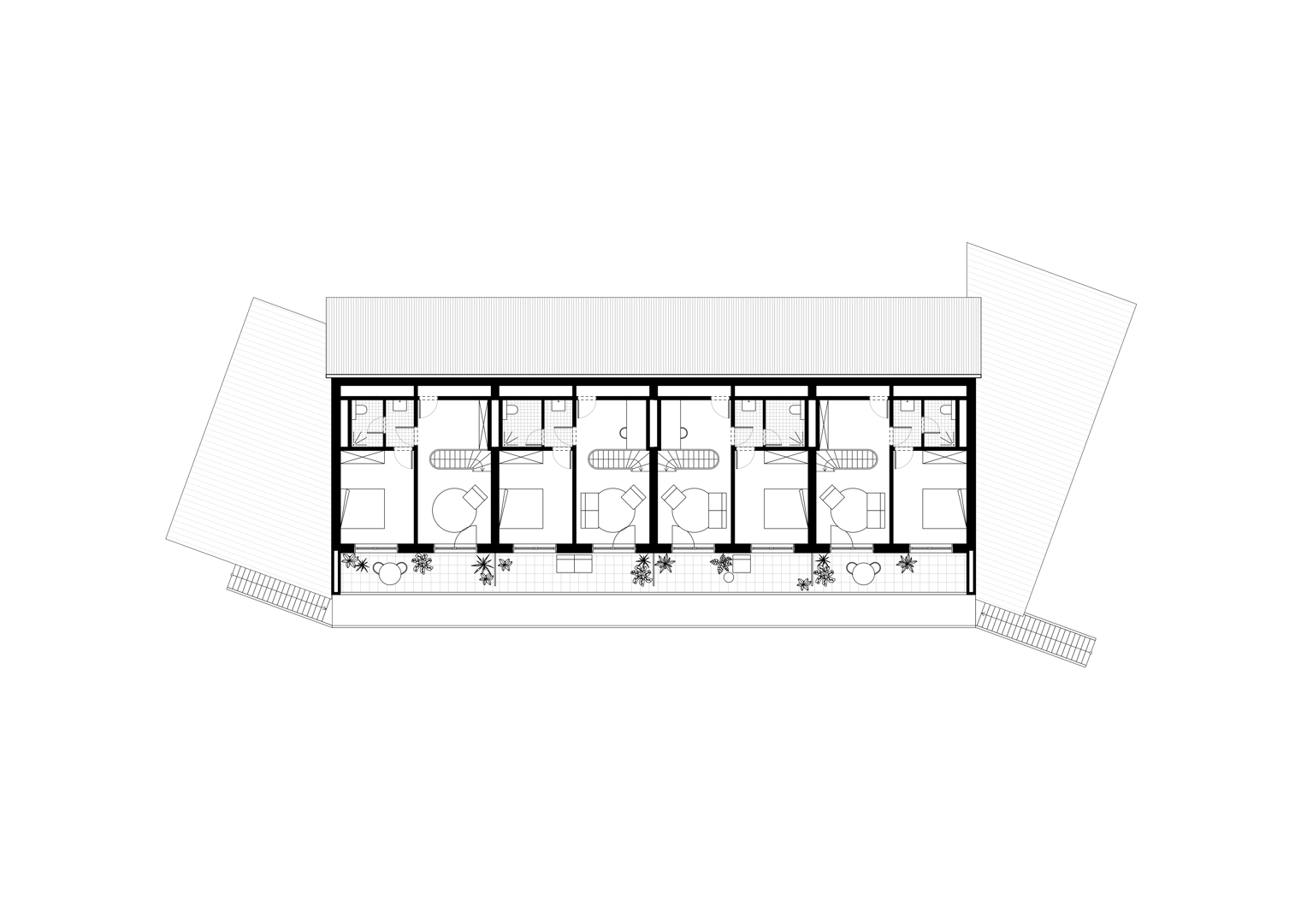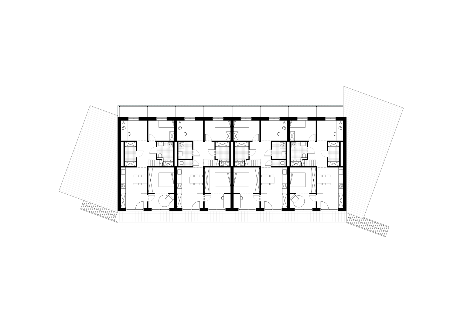 Het project omvat acht wooneenheden, waarvan vier gelijkvloerse appartementen met twee slaapkamers. Deze zijn levensloopbestendig en identiek van opzet. Op de verdieping bevinden zich vier ruime duplexappartementen, ontsloten via een gemeenschappelijke galerij. In het ontwerp koos Havana voor gespiegeld geplande units met doorlopende scheidingswanden, eenvoudige overspanningen en functionele ruimtes. Elke woning beschikt over een eigen buitenruimte die aansluit op een grote, collectieve tuin – het hart van het project.