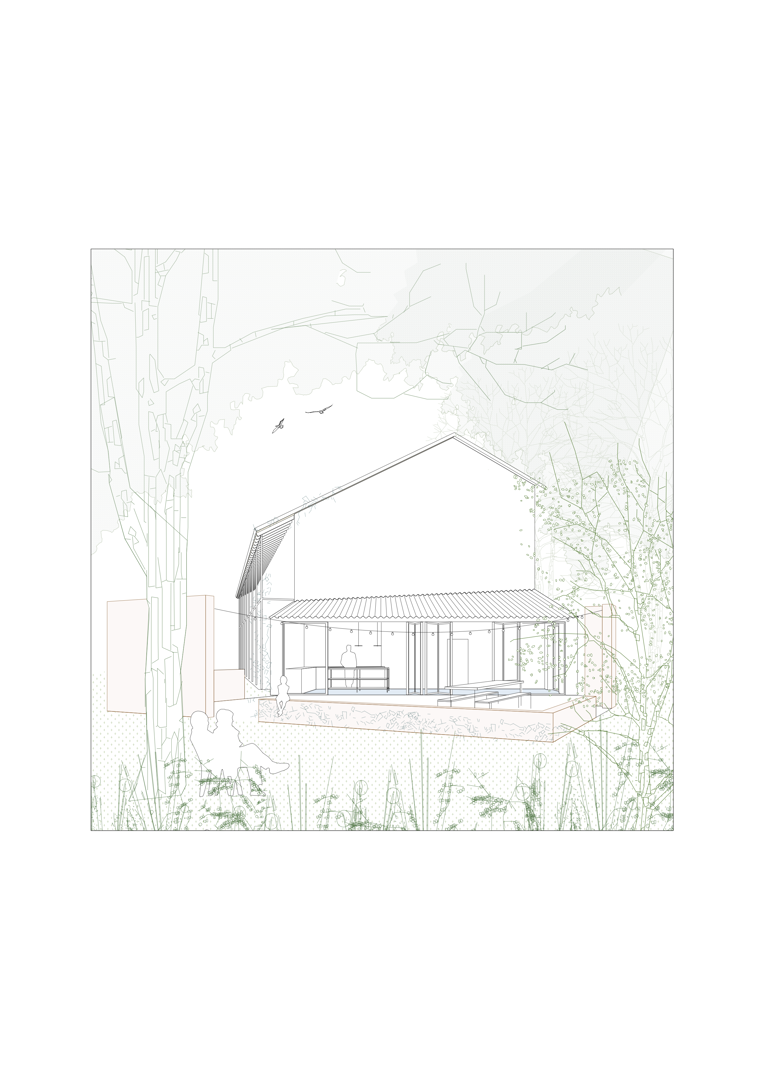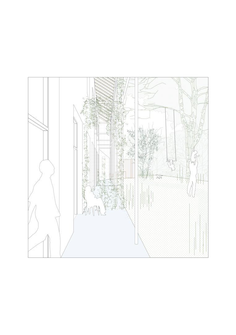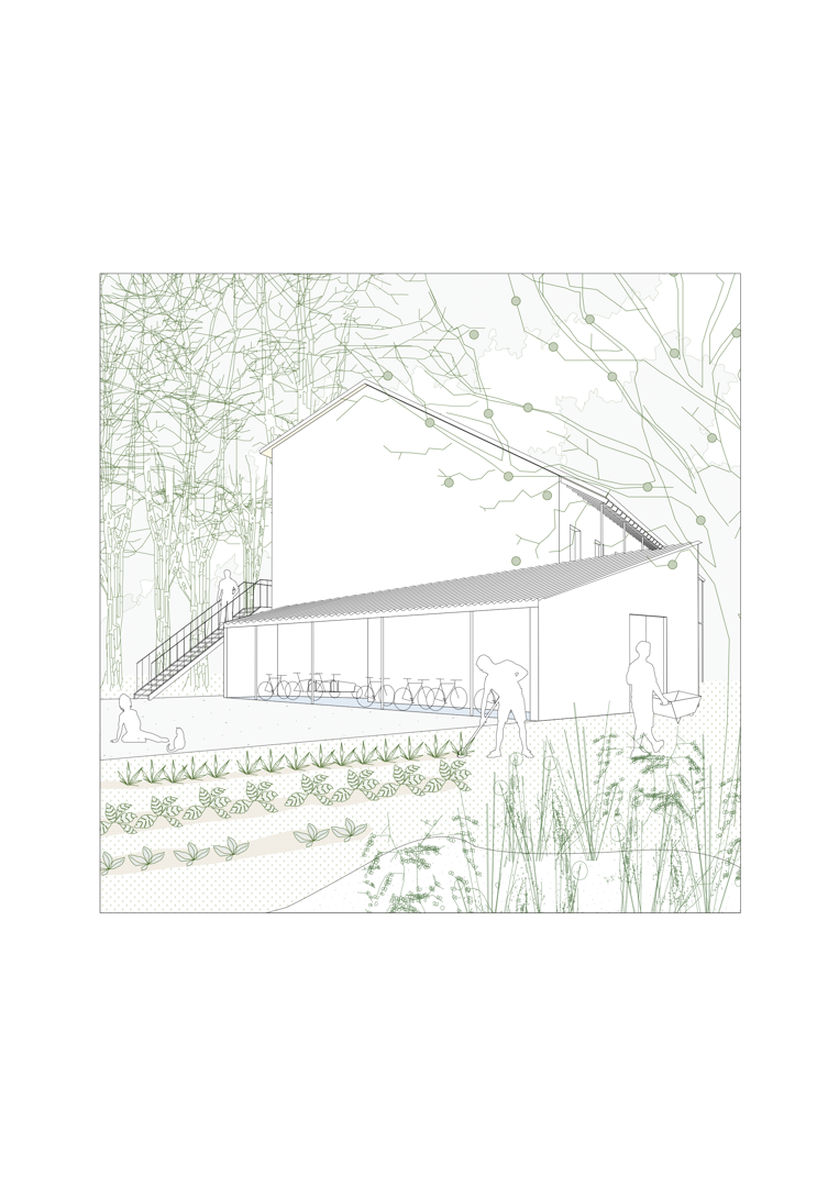 De architectuur vertaalt de missie van wooncoop: collectief en duurzaam wonen betaalbaar maken. De bewoners delen niet alleen de tuin, maar ook binnenruimtes zoals een polyvalente leefkeuken, een zithoek met bibliotheek, een logeerkamer, een wasruimte en een tuinhuis. Sommige woningen bieden ruimte voor intensief samenhuizen, terwijl andere eerder individueel functioneren. Het resultaat is een gelaagde sociale structuur waarin gezinnen, alleenstaanden en zorgbehoevenden samenleven met behoud van autonomie.