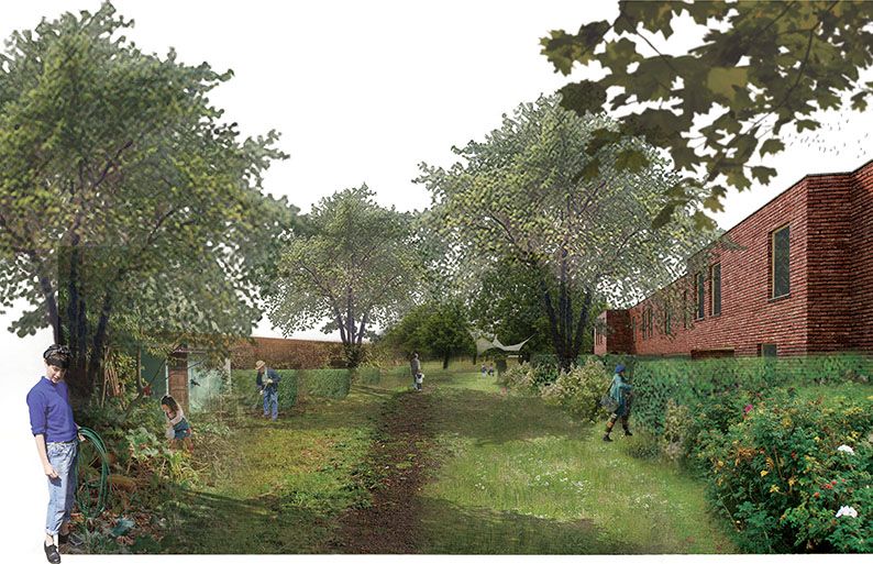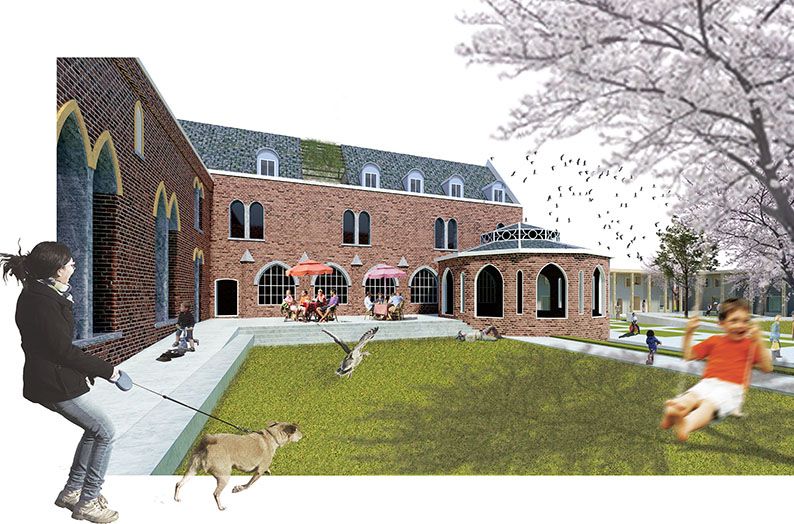 Architec en Studio Basta zagen een unieke kans voor dit cohousingproject: de grootte en de ligging van de site maken een duurzaam en betaalbaar ontwerp mogelijk. Hoewel de open kloostertuin dienst doet als ontmoetingsplaats, blijft het evenwicht tussen collectief en privaat essentieel. De reconversie van dit slotklooster naar een open hedendaagse vorm van samenwonen laat toe om heel expliciet een eigen betekenisvolle laag aan het geheugen van de plek toe te voegen. De kapittelzaal wordt zo het ankerpunt van een gemeenschap en de galerij wordt de moderne kloostergang die naar de historische waarde van de site verwijst.