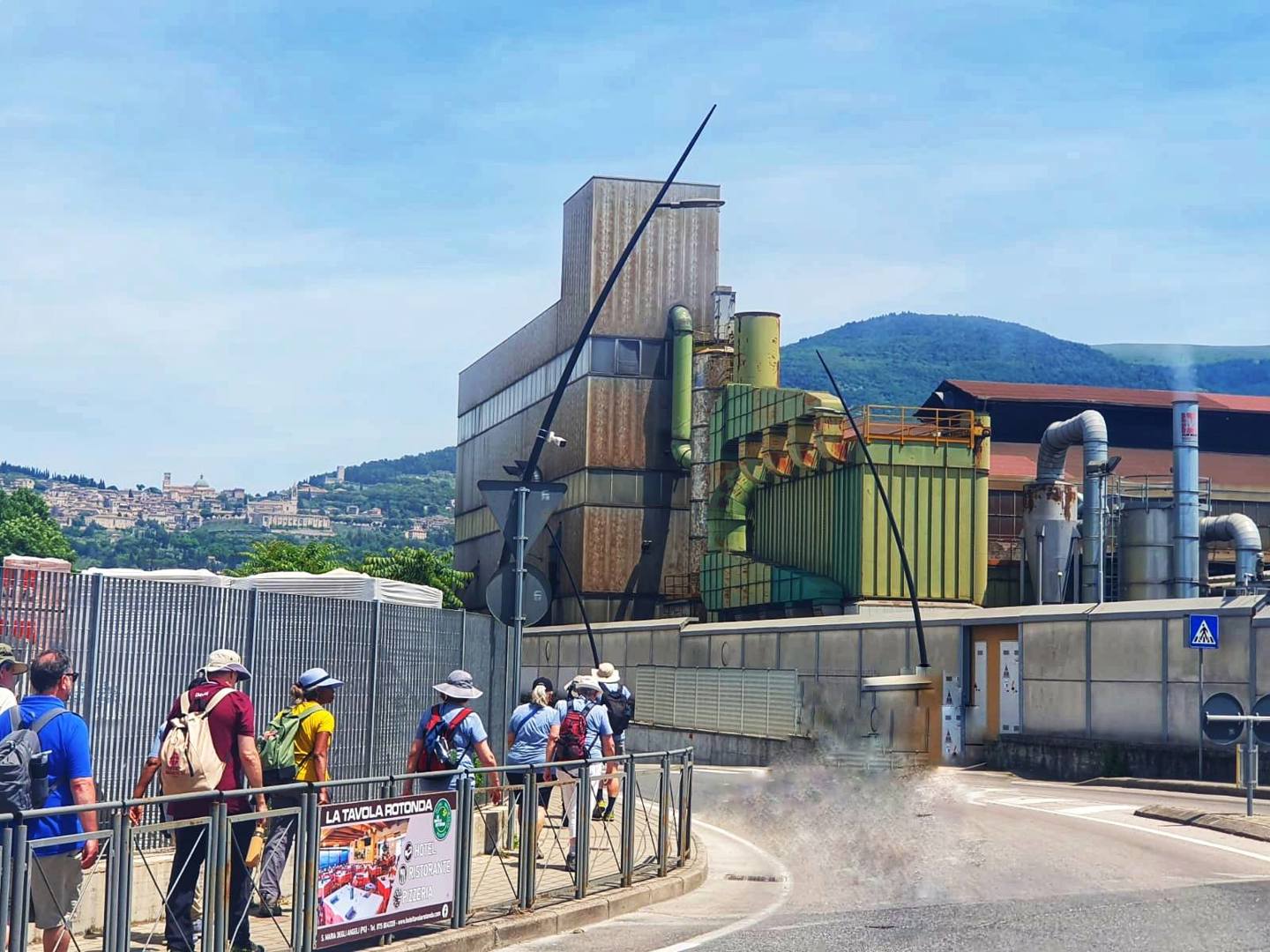 Boven aangekomen blijkt de kluis ook bereikbaar per auto – voor wie de klim niet aankan of voor de bevoorrading van het klooster dat eraan verbonden is. De route is dus niet enkel een natuurlijke ervaring, maar ook het resultaat van talloze menselijke ingrepen. Het is een cultuurlandschap geworden, ontworpen om mensen in contact te brengen met de spiritualiteit van Franciscus. De weg is deel van ons natuurlijk én cultureel erfgoed. Maar zelfs nobele ingrepen zijn niet vrij van imperfecties, zeker als we kijken naar de productieprocessen erachter. Laudato Si’ stelt terecht de vraag: hoe kunnen we deze ingrepen verduurzamen? Denk aan de luchtleiding, de watertoren, de greppels, het bosbeheer, het grind, de picknicktafel – en ja, zelfs de rubberen schoenzool.