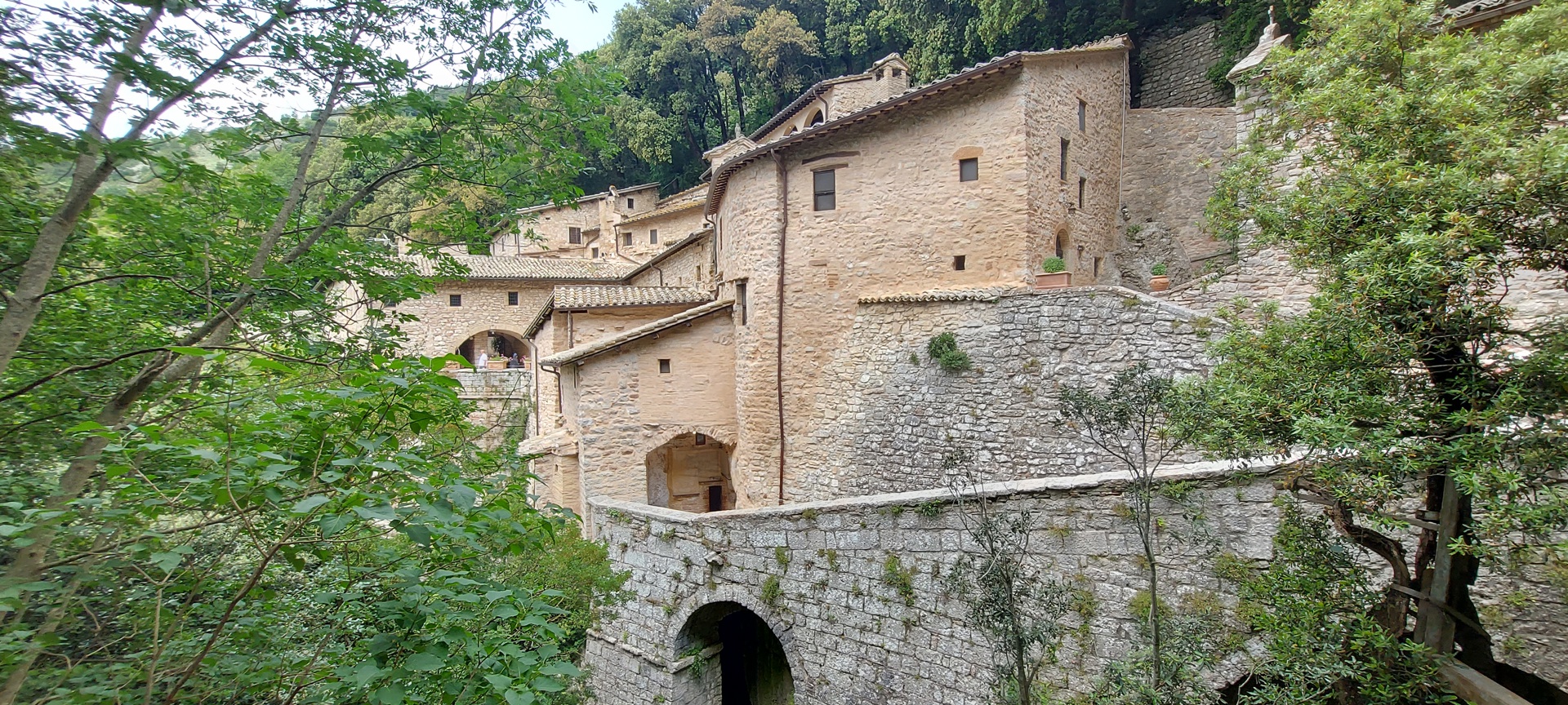 De klim naar de kluis is niet alleen fysiek, maar ook spiritueel. Ze vormt een tweeluik met de afdaling naar de Portiuncola, de kapel waar Franciscus vaak verbleef en waar hij de dag voor 4 oktober 1226 stierf – een datum die deze week herdacht wordt. François Cheng beschrijft in zijn boek François de spirituele complementariteit tussen het opstijgen naar de Eremo en het afdalen naar de Portiuncola.