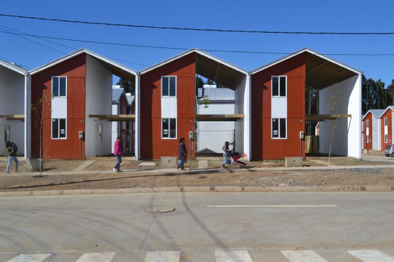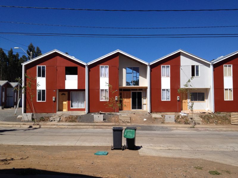Elke bewoner mag de invulling van de tweede helft volledig vrij kiezen. Zo ontstaat een prachtige diversiteit aan kleuren en materialen die schitteren onder de Chileense zon. In de praktijk hebben we vastgesteld dat reeds 80% van de in gebruik genomen woningen na enkele weken reeds is aangevuld. De hele buurt geniet van hun ‘eigen’ project en al snel sidderen de asados (Chileense barbecue) op elke hoek en weerklinkt het cumbiaritme in de straatjes.