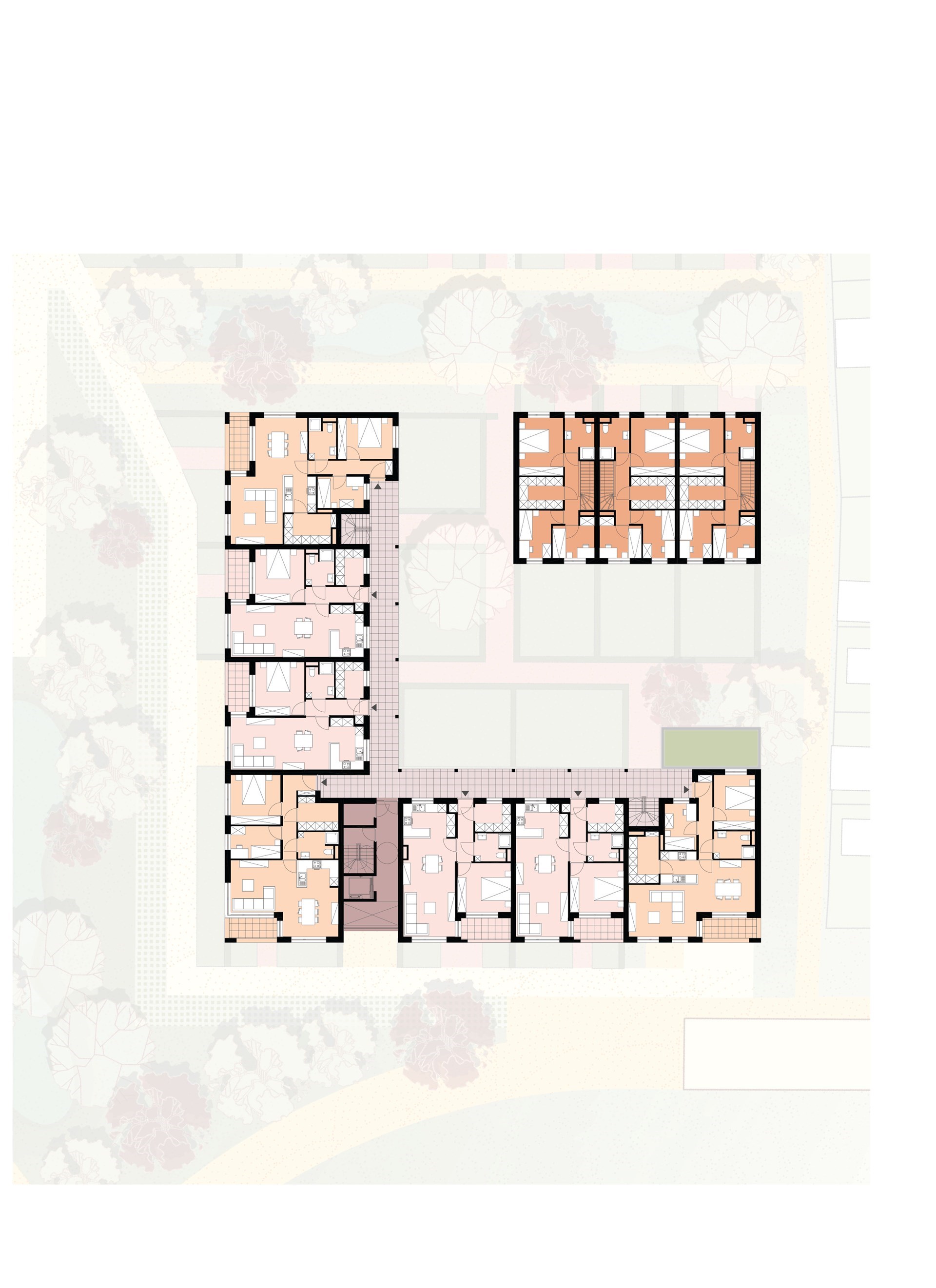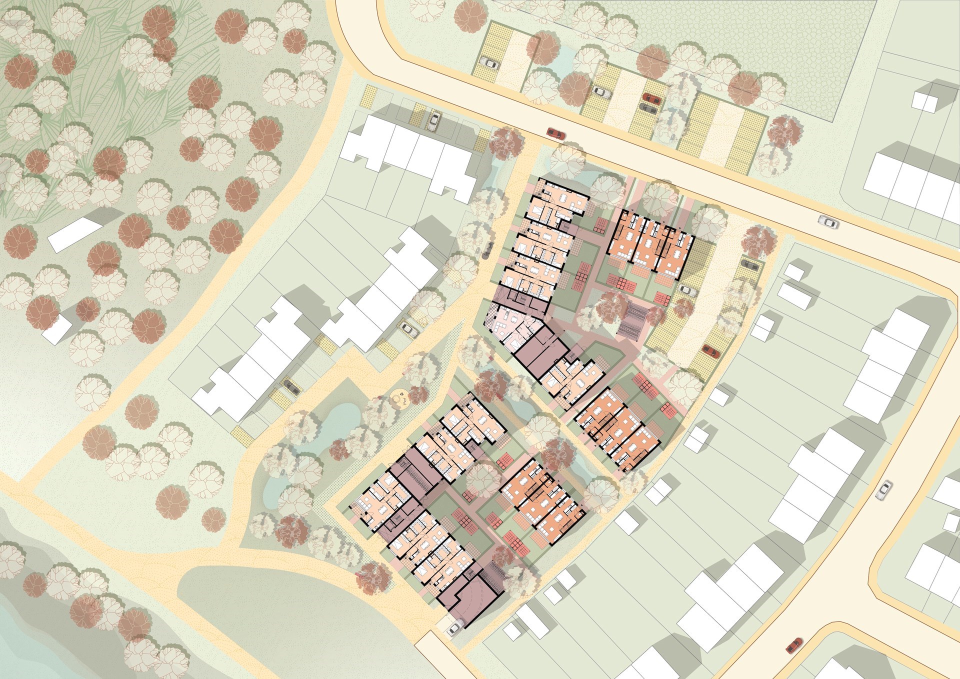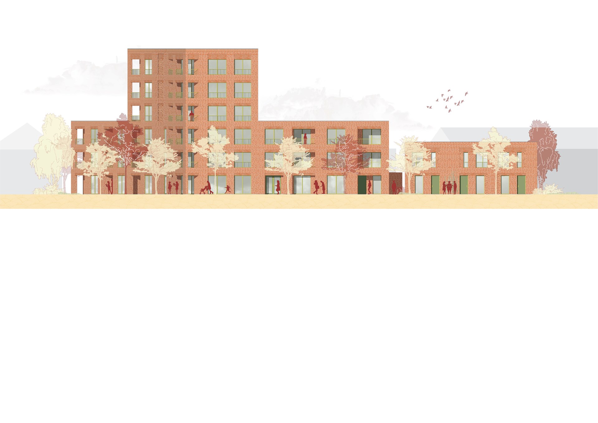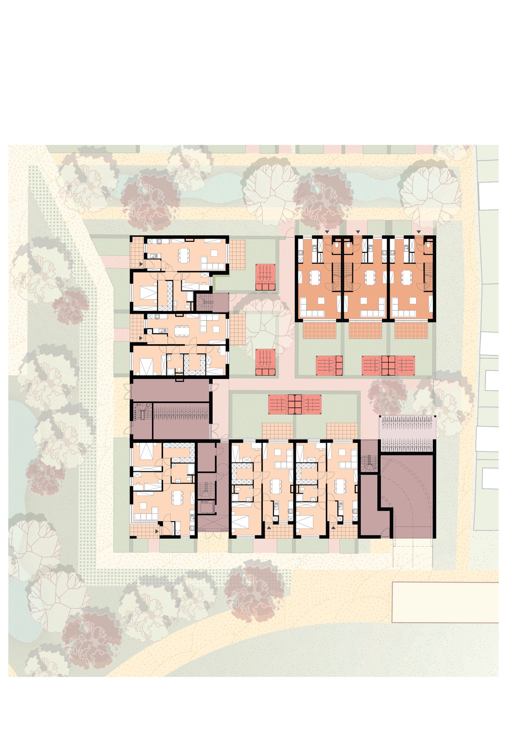 De invulling van de bouwvolumes creëert een divers woningaanbod. Door de invulling van de bouwvelden ontstaat een combinatie van appartementen en grondgebonden woningen. Deze diversiteit aan woningtypes resulteert in een diversiteit aan toekomstige bewoners en vergroot mogelijk het sociaal contact.