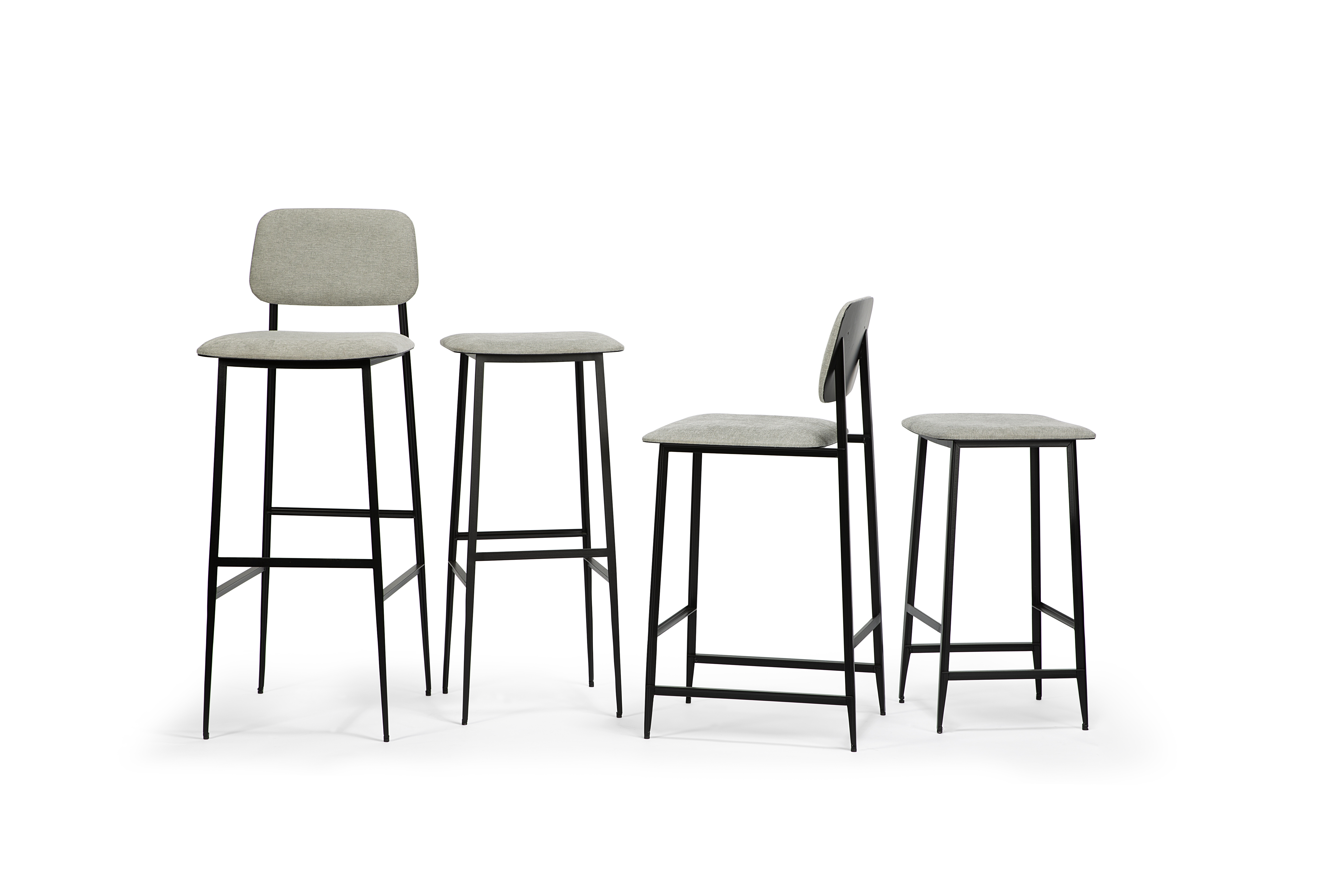 Met de DC collectie bewijst Ethnicraft dat ze ook van andere markten thuis zijn. De stijlvolle combinatie van zwart metaal en grijze stof passen perfect bij het luchtige en toch stevige design van de DC stoel. Beschikbaar in maar liefst 3 verschillende hoogtes, met of zonder rugsteun.