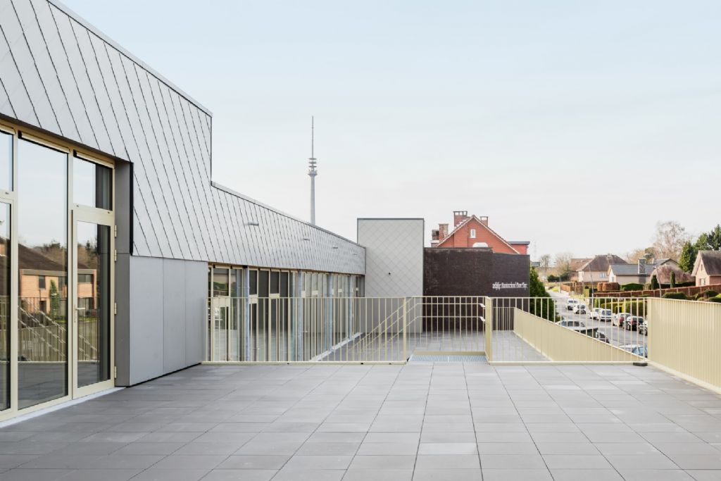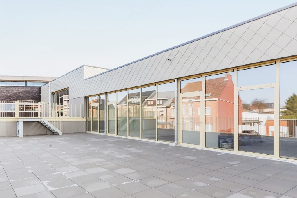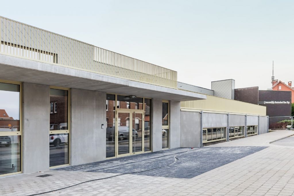 Gemeentelijke basisschool Den Top in Sint-Pieters-Leeuw werd recent uitgebreid naar een ontwerp van OSK-AR architecten uit Dilbeek. De wens tot een compact volume noopte de architecten tot enige creativiteit bij het vormgeven van de nieuwe sportzaal. Die werd in de grond geduwd, waardoor ook voor het betrokken studiebureau, ABETEC architecten en ingenieurs, een belangrijke rol was weggelegd. Het ontwerp kenmerkt zich voorts door zijn aanpasbaarheid.