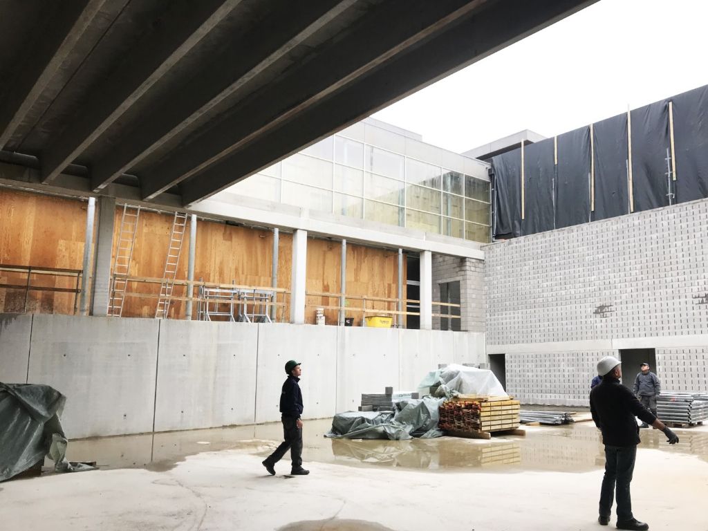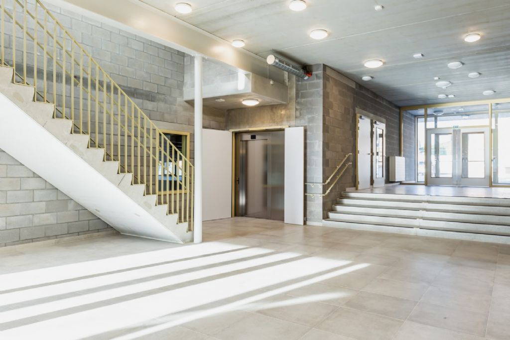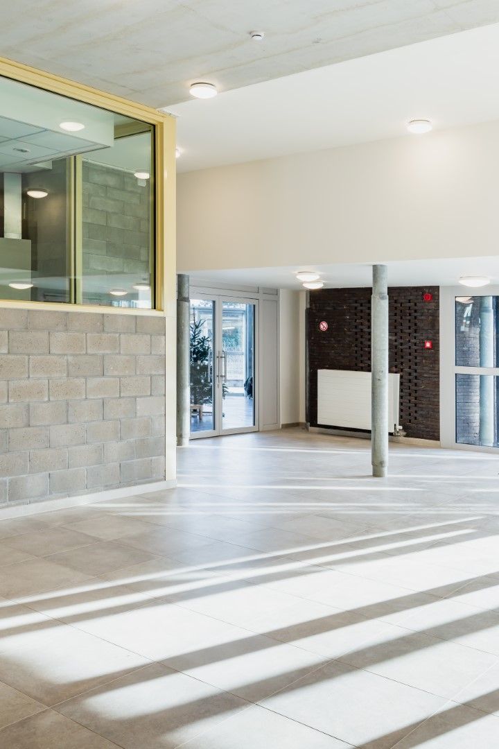 Aangezien het nieuwbouwvolume langs drie zijdes moest aansluiten op drie bestaande gevels, was het controleren van de vloerplassen volgens de architecten een grote uitdaging.
