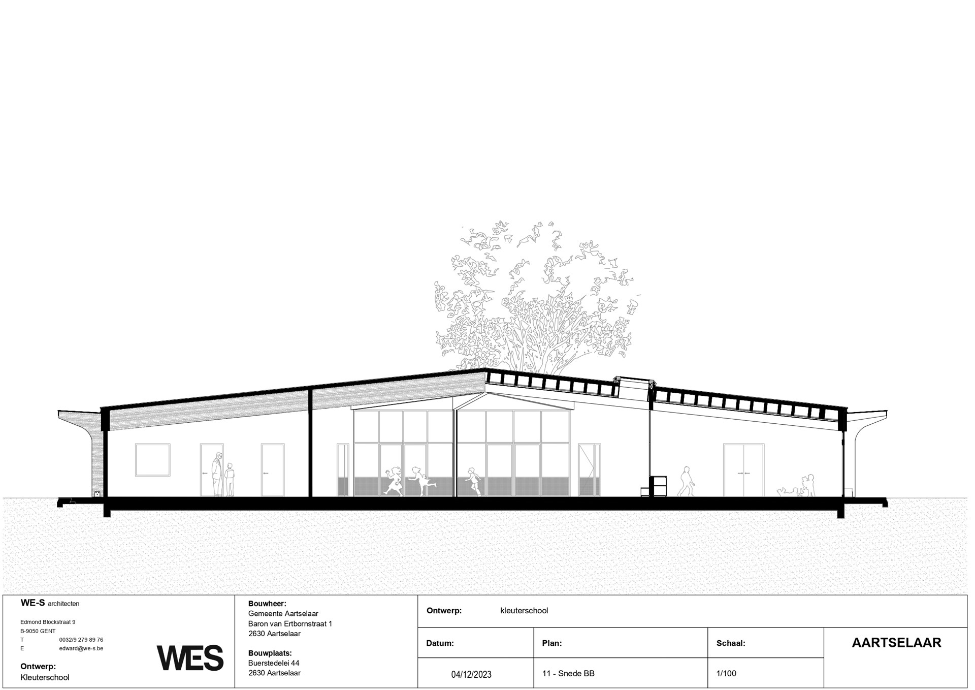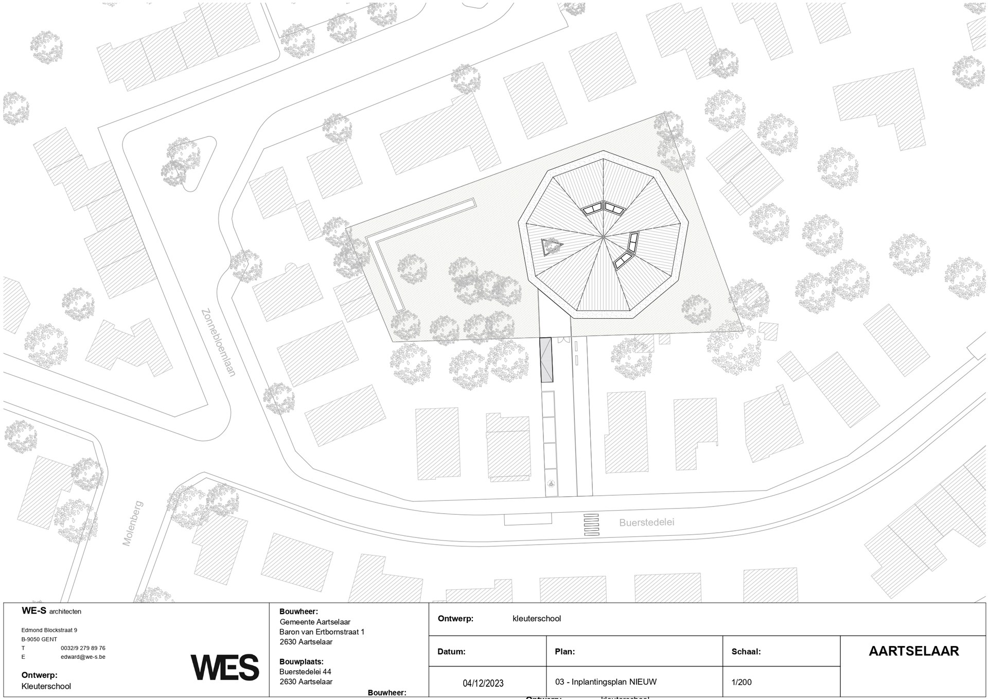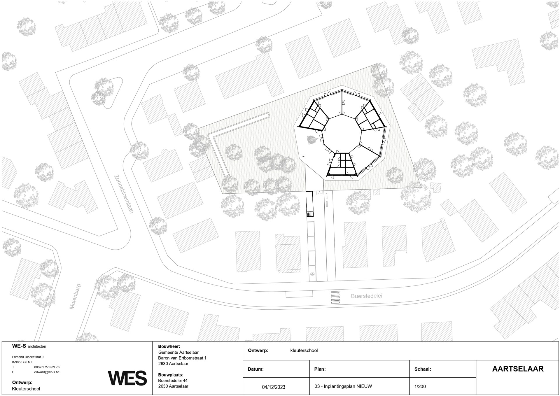 In de wijk Buerstede in Aartselaar kunnen de kleuters sinds dit schooljaar naar een gloednieuw gebouw. Het voormalige schoolgebouw uit 1967 voldeed niet meer aan de hedendaagse normen, kampte met een capaciteitstekort en was dan ook dringend aan vervanging toe. Het gemeentebestuur van Aartselaar schreef een ontwerpopdracht uit waar maar liefst veertig architectenbureaus op intekenden. Rekening houdend met de gunningscriteria koos het gemeentebestuur uiteindelijk voor het ontwerp van WE-S architecten uit Gentbrugge. Het bureau realiseerde een nieuwe school waarbij naast het ergonomische vooral aandacht werd besteed aan licht, rust en ruimte.