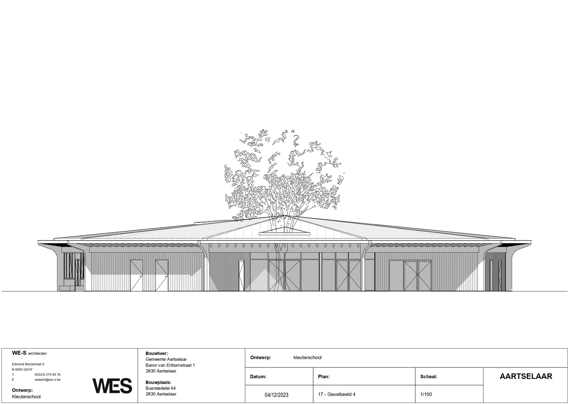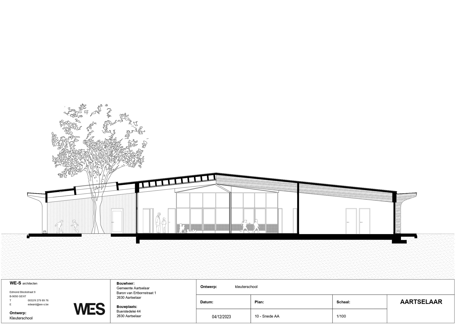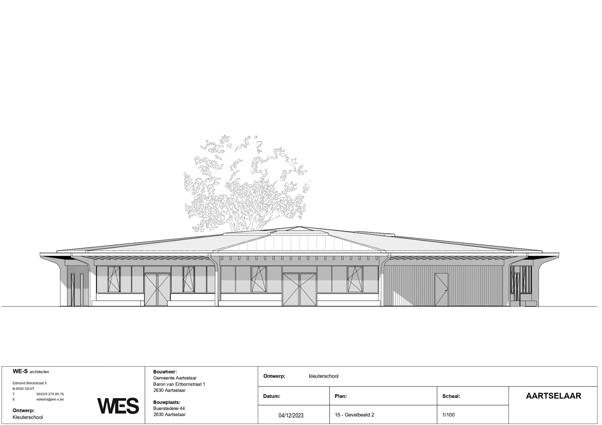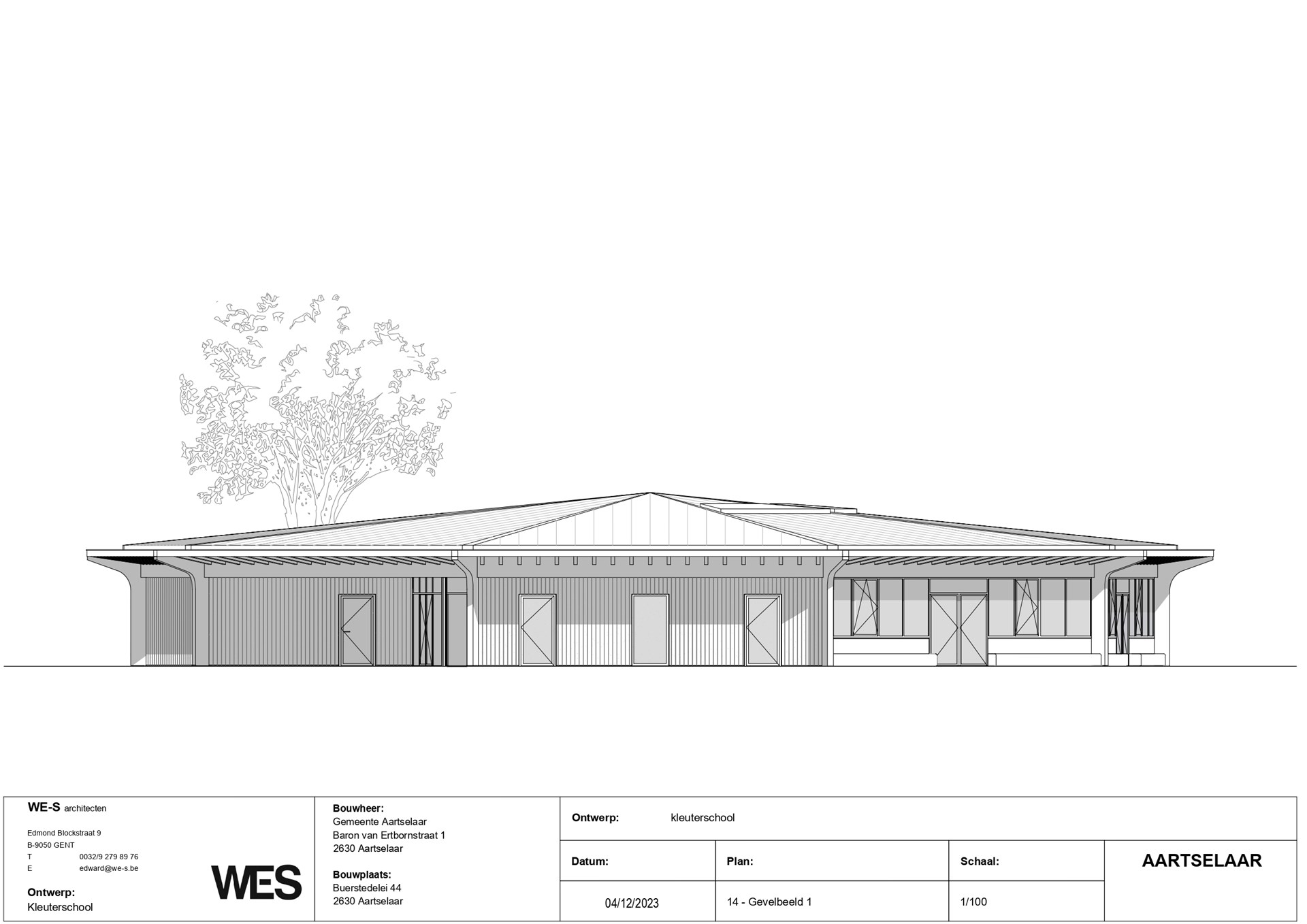 In de wijk Buerstede in Aartselaar kunnen de kleuters sinds dit schooljaar naar een gloednieuw gebouw. Het voormalige schoolgebouw uit 1967 voldeed niet meer aan de hedendaagse normen, kampte met een capaciteitstekort en was dan ook dringend aan vervanging toe. Het gemeentebestuur van Aartselaar schreef een ontwerpopdracht uit waar maar liefst veertig architectenbureaus op intekenden. Rekening houdend met de gunningscriteria koos het gemeentebestuur uiteindelijk voor het ontwerp van WE-S architecten uit Gentbrugge. Het bureau realiseerde een nieuwe school waarbij naast het ergonomische vooral aandacht werd besteed aan licht, rust en ruimte.