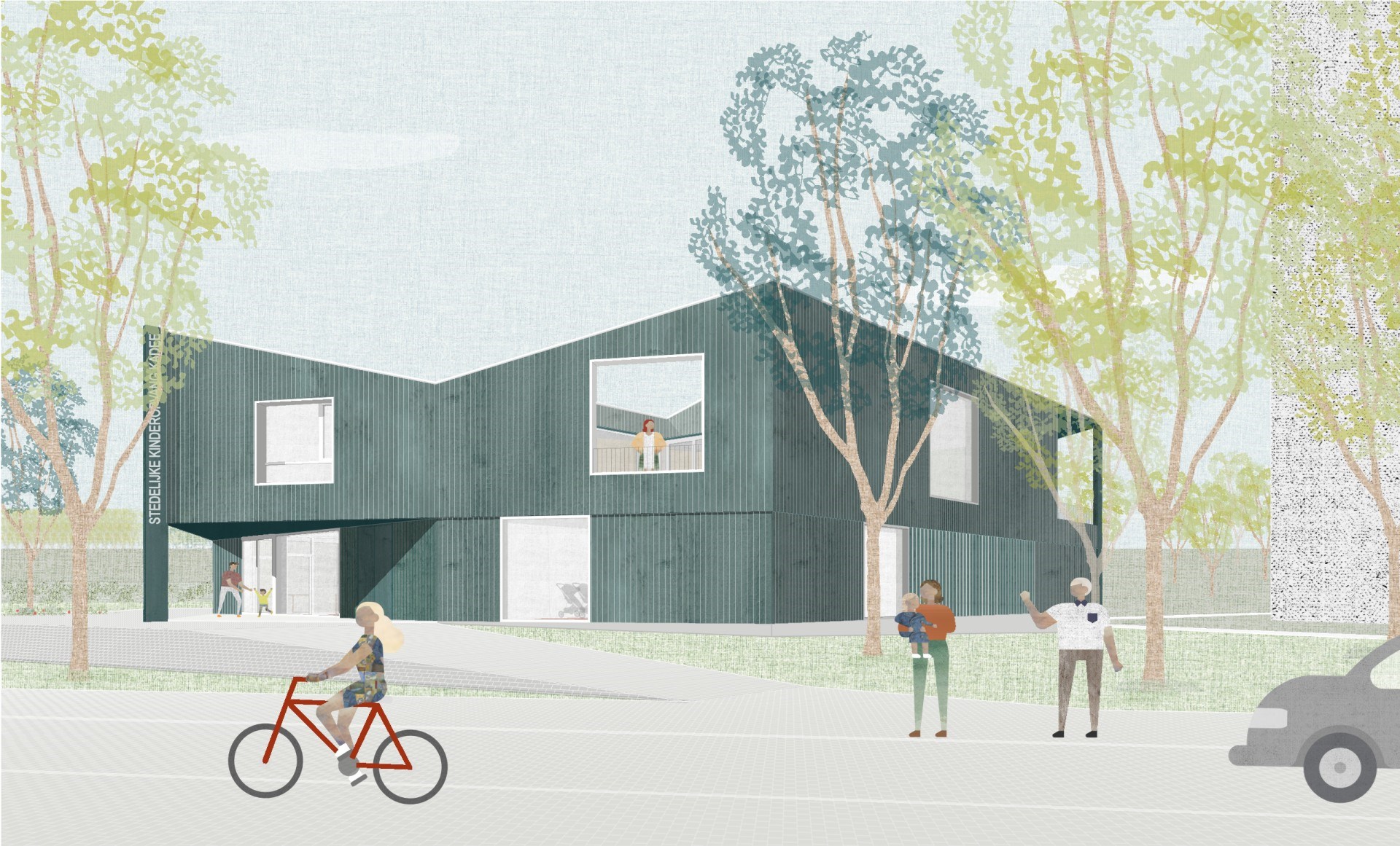 Compacte nieuwbouw met avontuurlijke buitenruimte voor kinderopvanglocatie Kadee (Vermeiren-De Coster Architecten)