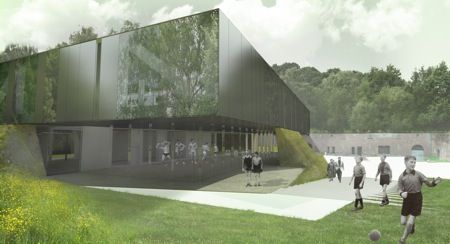 De footprint van de bouwzone was eerder beperkt, de bouwezone ligt op het glacies (= aanzienlijke helling binnen het fort, oorspronkelijk bedoeld om projectielen te kunnen afketsen), er zijn zowel stringente eisen naar erfgoed, omliggende biotoop (vleermuizen). Hier bovenop moet het geheel voldoen aan de PHPP-standaard voor scholen.