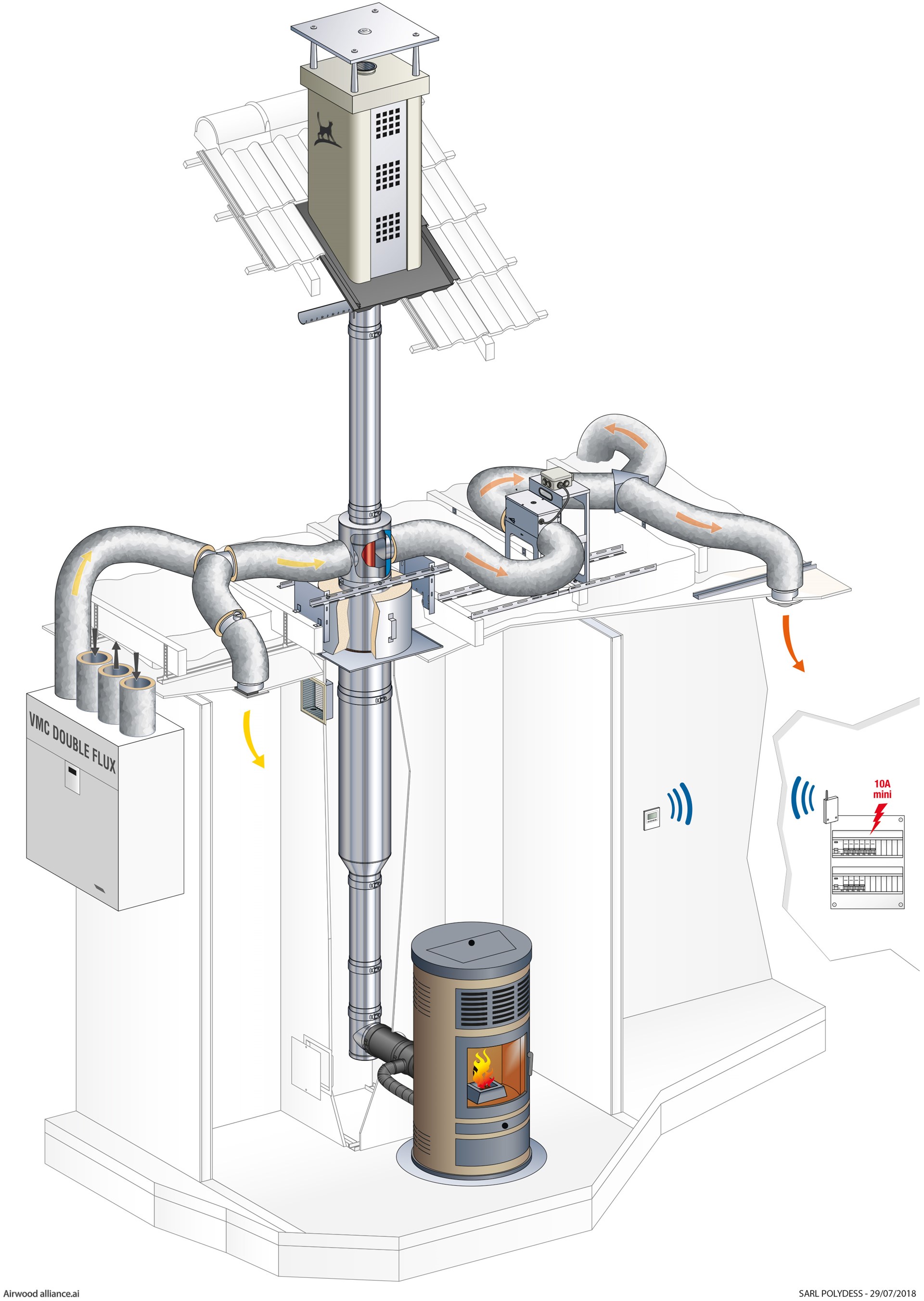 Een concentrisch rookkanaal is de ideale oplossing voor een pelletkachel. Een concentrisch rookkanaal maakt het mogelijk het toestel te voorzien van voorverwarmde lucht. De verbranding wordt dus verbeterd omdat ze sneller tot stand komt. Dit betekent een verhoging van de efficiƫntie met 5 tot 10 punten. Meer rendement betekent minder brandstofverbruik voor dezelfde warmte.