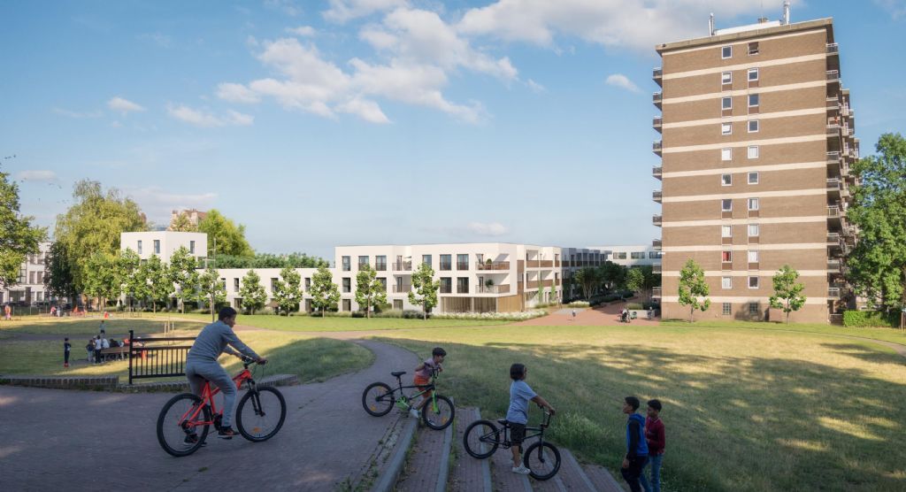 “Binnen het project streven we naar duurzame, betaalbare en onderhoudsvriendelijke materialen. Enerzijds vertrekken we zoveel mogelijk van bestaande betonstructuren en stellen we houtskeletbouw en duurzame isolatietypes in vloeren en wanden voorop. Anderzijds besteden we ook veel aandacht aan afwerkingsmaterialen. Zo kiezen we voor een lichte gevelbekleding in crepi, in combinatie met witte glanzende tegels. Deze gevelafwerking wordt doorgetrokken in ieder nieuw bouwvolume. Verder krijgen de gevels, met een knipoog naar de houtskeletbouw, een aantal houten accenten, zoals hekwerk, zichtbare gelamelleerde houten kolommen, een architecturale houten binnentrap, etc. Ook de terrassen krijgen een houten vloerafwerking. Dit zorgt voor een warm geheel in combinatie met de andere gevelmaterialen”, aldus het consortium.