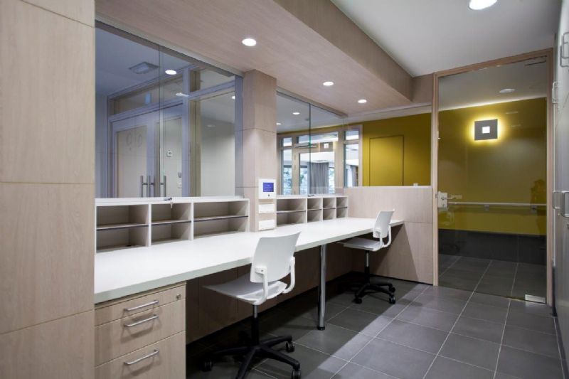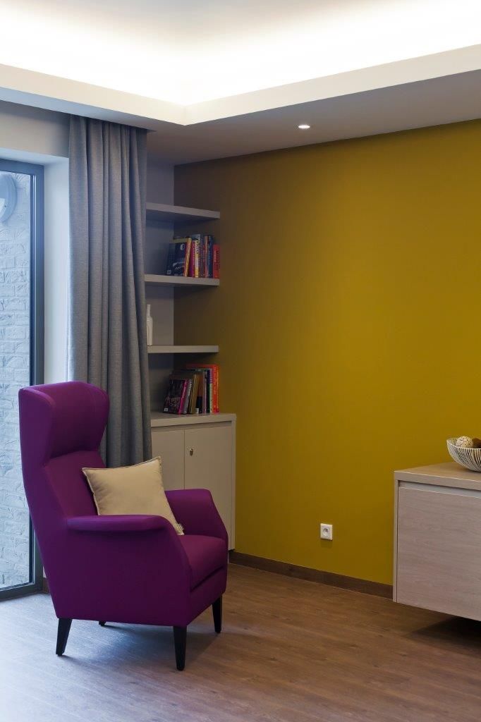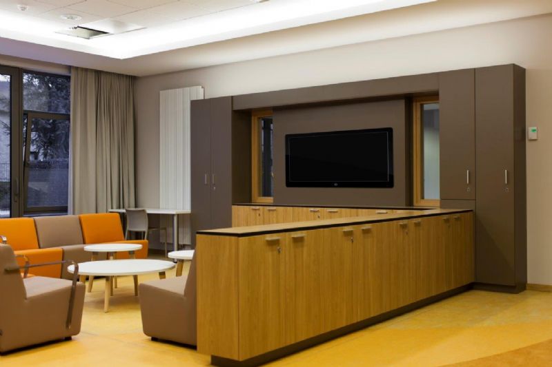 Hij merkt ook op dat er zich op het vlak van menselijke wensen en behoeften nog een andere evolutie aan het voltrekken is. Huiselijkheid, gezelligheid en sfeer worden immers alsmaar belangrijkere factoren in een doordachte interieurinrichting. “We trachten – met het zorgaspect voortdurend in het achterhoofd – meubels, behang en decoratie te kiezen die niet in een normale huiskamer zouden misstaan. Wij maken architecten attent op het woonaspect van bepaalde zorginstellingen en staan onze klanten bij met advies. Vanuit onze jarenlange ervaring trachten we in overeenstemming met het door de architect vooropgestelde concept de juiste oplossingen te vinden om een ruimte coherent in te richten.”
