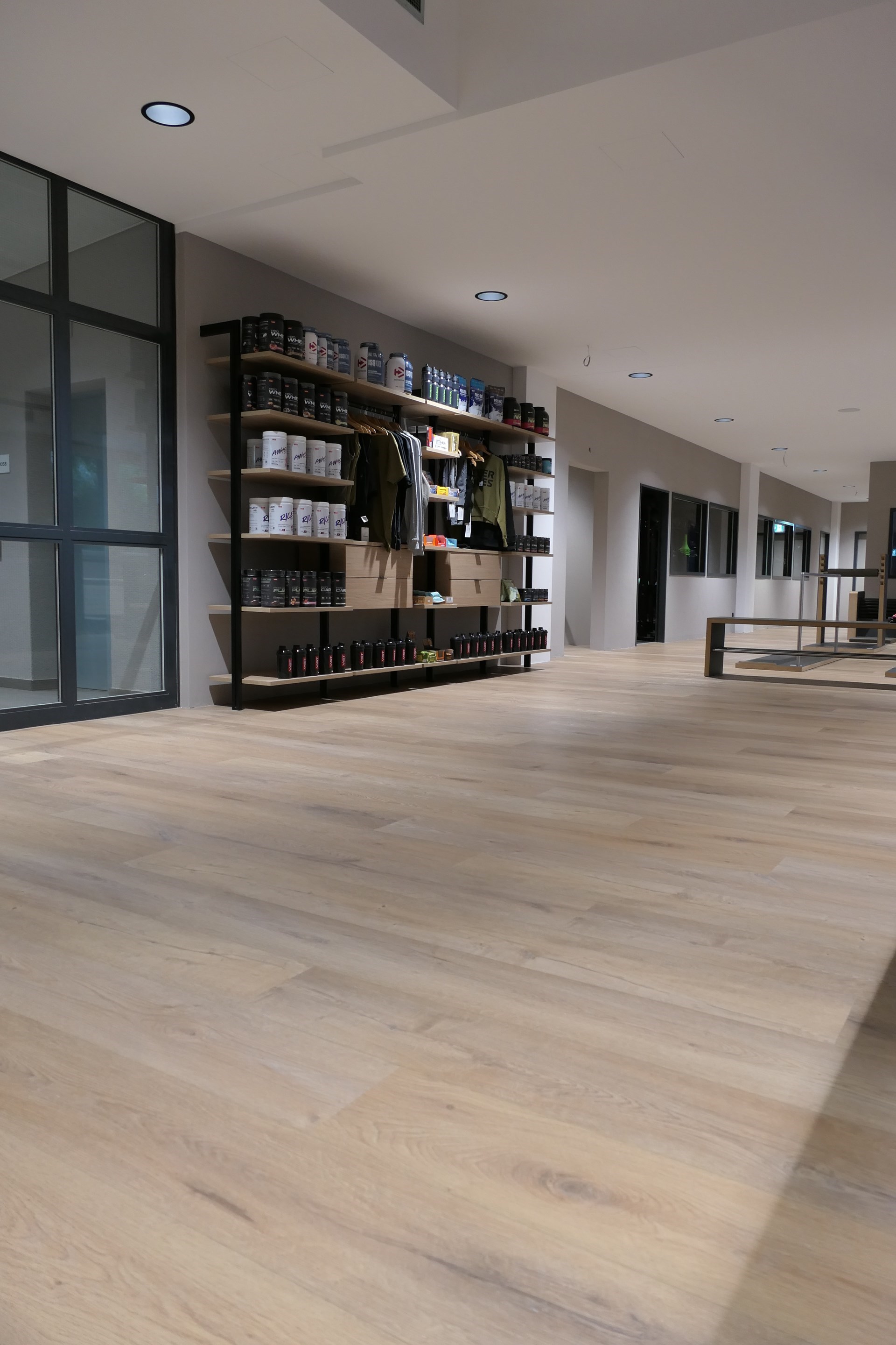 "Kwaliteit maakt het verschil, dat is de belofte als aanbieder van de meest uitgebreide en unieke fitness- & gezondheidstrainingen.", zegt eigenaar Ayhan Türküm. Daarom was de keuze van de vloer hier zo belangrijk. Voor het interieurontwerp is gekozen voor Fremont Oak 82 uit de Essentials collectie van COREtec®. De 180 cm lange en 23 cm brede planken met overlangse V-naden en gesynchroniseerd poriënoppervlak zijn over een groot oppervlak bijna niet van een echte houten vloer te onderscheiden.