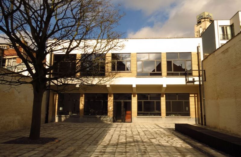 Het gebouw aan de straatzijde uit de 16e eeuw verenigt drie panden, hierin zijn de winkelruimtes en appartementen ondergebracht. De overdekte binnenplaats deed dienst als speelplaats. De overkoepelende stalen glasstraat kreeg een restauratie. In de achterbouw uit 1946 bevinden zich vier studio’s.