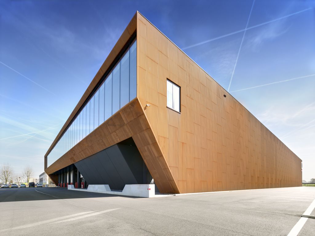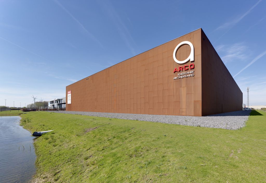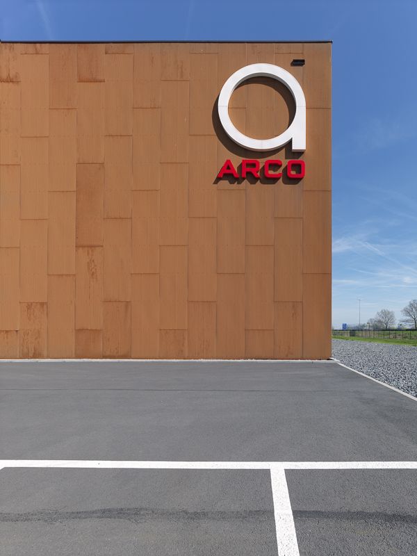 Steeds vaker zie je cortenstaal als gevelbekleding opduiken bij industriële projecten. Ook het nieuwe bedrijfsgebouw van ARCO in Lokeren kreeg een huid van cortenstaal aangemeten. Gegolfde platen van cortenstaal werden gemonteerd tegen sandwichpanelen.