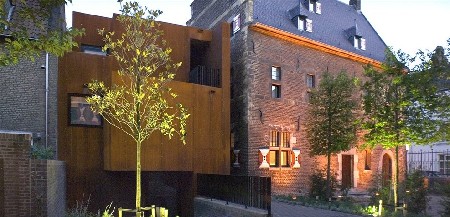 Toen het Kruisherenklooster in de jaren tachtig leeg kwam te staan, kocht de Stad Maastricht het klooster op. Het was geen sinecure om het klooster een nieuwe functie te geven. Tot ondernemer Camille Oostwegel de stad voorstelde er een rendabel hotel in onder te brengen. SatijnPLUS Architecten stond in voor het ontwerp. Het oorspronkelijke ontwerp is bijna onaangeroerd gebleven. Wel is er een nieuwbouw opgetrokken, die volledig uit Cortenstaal bestaat. Het Cortenstaal benadrukt het onderscheid tussen het nieuwe en het oude klooster.