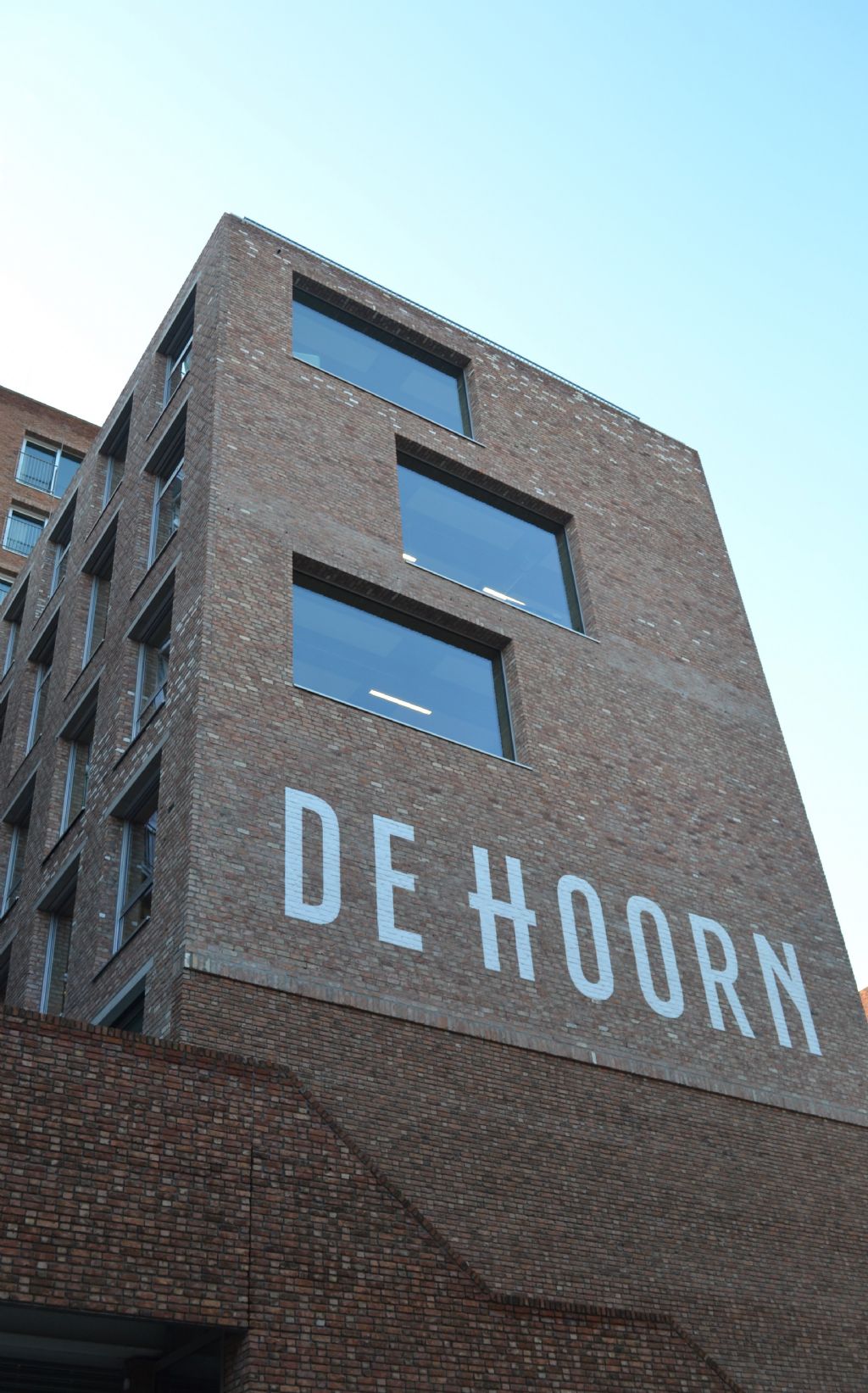 De Hoorn was destijds een pionier in het Belgische coworking- en evenementenlandschap. Door de parking naast het oude brouwerijcomplex in te wisselen voor een 42 meter hoge nieuwbouw, die op 7 februari officieel werd ingehuldigd, zet het zijn voortrekkersrol extra in de verf. Het gelijkvloers van de uitbreiding herbergt een ruime coworkingspace met een aanpalende bar. Verdiepingen 1 tot en met 6 zijn voorbehouden voor kantoren. Op niveau 7 zijn twee skyboxen met grote terrassen ingericht. Verdiepingen 8, 9 en 10 bieden plaats aan hotelkamers, studio’s en lofts met al dan niet gemeenschappelijke keukens en een adembenemend uitzicht op de Leuvense skyline. De elfde verdieping doet dienst als technische ruimte. “Als ‘workspace’ huisvest De Hoorn voortaan vijfhonderd personen, verspreid over meer dan 35 bedrijven en twintig eenmanszaken. We zetten expliciet in op ondernemingen uit de creatieve sector, zodat er binnen de muren van ons complex een unieke kruisbestuiving ontstaat. Bovendien kunnen ook bedrijven die niet in De Hoorn gevestigd zijn terecht in de vergaderzalen en de skyboxen”, aldus Sam Custers, CEO van De Hoorn. “Het innovatieve woonconcept – ‘De Hoorn Housing’ – geeft ons vooruitstrevende project een extra dimensie. Er zijn negen designlofts en zeven cohousingkamers beschikbaar, waarmee we vooral mikken op ondernemers, onderzoekers, expats of artiesten die van Leuven hun tijdelijke uitvalsbasis willen maken. Een bijzondere primeur, want De Hoorn is de eerste Belgische ‘workspace’ waar ook effectief gewoond kan worden.”