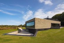 De inplanting van het gebouw in het landschap vereiste extra aandacht voor de materialisatie. Zo werd het minimalistische ontwerp uitgewerkt met materialen die natuurlijk, aards, strak en elegant zijn en tevens de horizontaliteit versterken. De kleur van het metselwerk is natuurlijk en contrasterend met de groene coulisse en heeft de nuances van de bomen in zich.