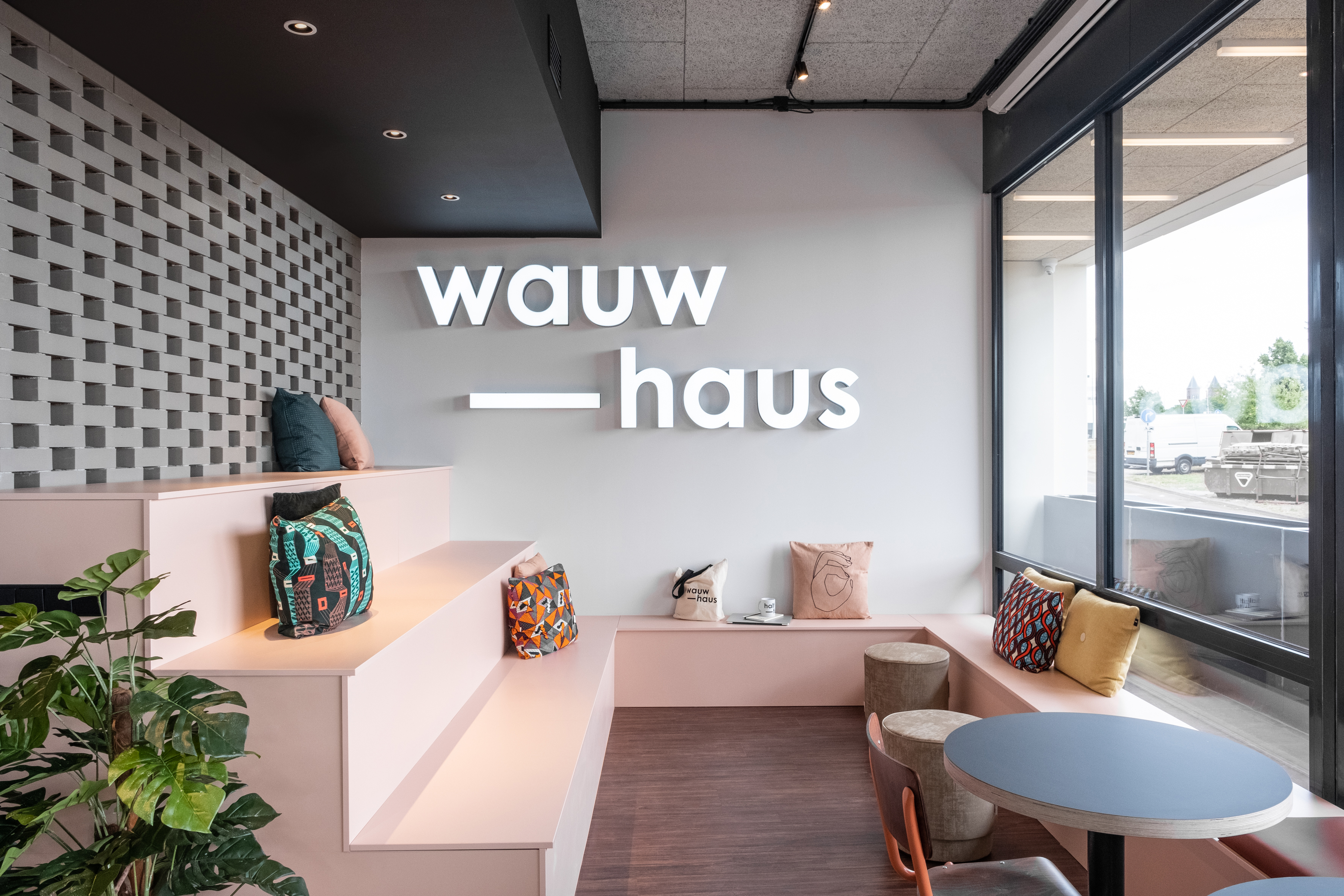 Wauwhaus is een community van studenten die zichzelf en hun toekomst ontwerpen. Creneau International: “Dit deed ons denken aan Bauhaus. We wilden wel de link naar Bauhaus, maar vrolijker en jonger. Wauw is een kreet van verbazing, geluk en positiviteit. Dus Bauhaus werd Wauwhaus. In de typografie staat Wauw boven Haus, een referentie naar de 6 verdiepingen die op elkaar staan, een bewuste keuze dus. Het lettertype is simpel en bold, en heeft wat weg van Bauhaus. In de tijd van het modernisme zagen ze het ook graag strak en simpel.”