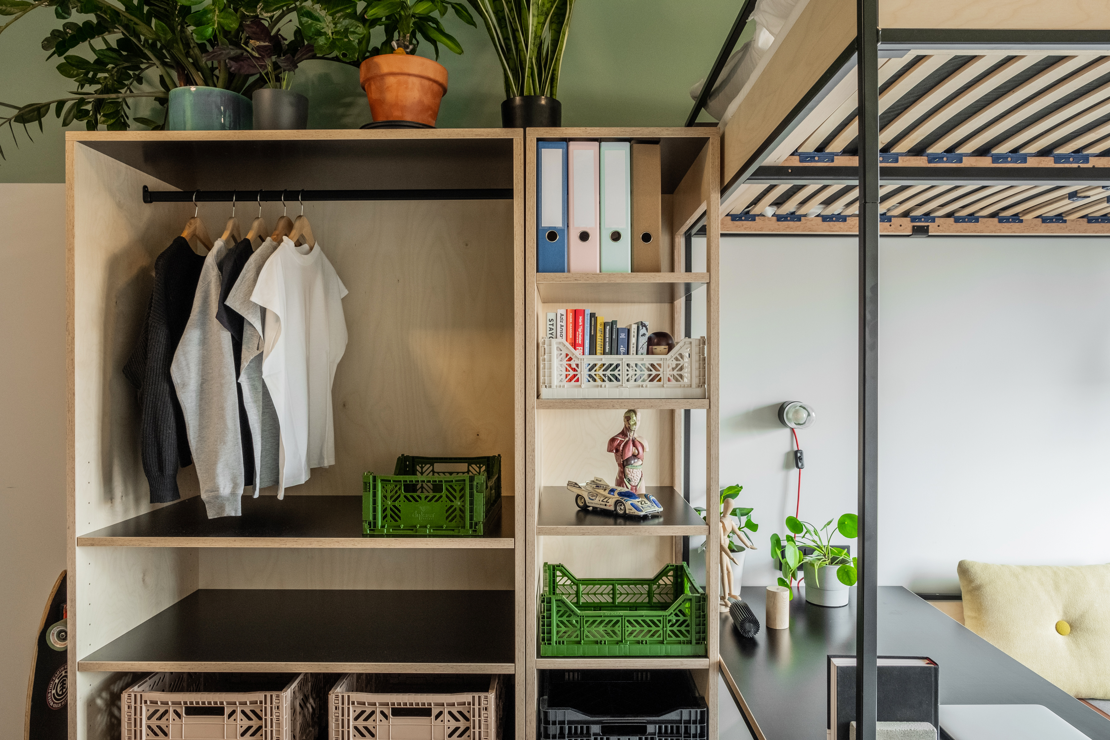 Creneau International: “We werkten rond 3 eigenschappen van Generation Z: visueel, creatief en sociaal geëngageerd. Ons antwoord: een community met gedeelde faciliteiten zoals gemeenschappelijke zitplekken, stille studeerplekken, laundryroom, delivery lockers en een fietsenparking. Alle kamers kregen hetzelfde canvas. Dat canvas gaat uit van het less is more principe, het idee van net genoeg. Maar doordat de gemeenschappelijke ruimtes een extentie zijn van de kamers en ze zo ruimte hebben om elkaar te inspireren, spreken we bij Wauwhaus liever van het less but more principe. Een eenvoudige basis die elk individu kan maximaliseren.