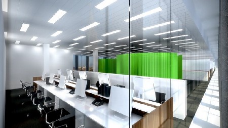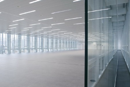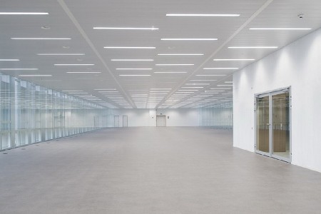 Voor de studie en uitvoering van de klimaatplafonds werd een beroep gedaan op de zusterbedrijven Interalu en LCC. In de kantoren hangen in het totaal 14.000 m² Easy-Klima Plus klimaatplafonds (paneeltype CL 225 Full Perfo)