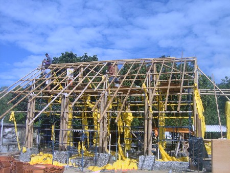 De nadruk lag niet zozeer op het ecologische aspect van de constructie, maar vooral op het gebruik van lokale grondstoffen die zo goed als gratis te verkrijgen waren in het regenwoud waarin ze wonen. De bamboe werd op een correcte manier gekapt en behandeld om het skelet van het gebouw dat het dak moest dragen (kolommen en vakwerken) te voorzien, terwijl daarnaast allerhande aardetechnieken, zoals rammed earth en geperste adobestenen, werden aangewend om bovenop de stenige basis indelingen te maken aan het gebouw. Op een verstaanbare manier werden natuurlijke ventilatietechnieken en beschutting voor de zon voorzien, zodat deze principes (die direct voelbaar waren als één van de aangenaamste plekken in het dorp) ook als voorbeeld dienden voor hun eigen huizen. Op die manier hebben ze geleerd hoe het best in hun eigen woon-onderhoud te voorzien, terwijl ze eveneens met deze aangeleerde technieken en het goedkope basismateriaal ook commerciële opdrachten kunnen uitvoeren, vooral dan in de hotel- en horecasector die deze vorm van architectuur erg kunnen smaken.