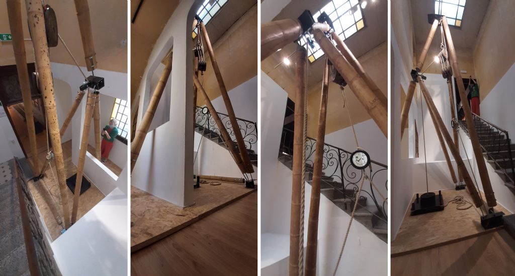 Door een krachtenspel dat ingenieur, architect en uitvoerder samen ontwierpen te visualiseren, wordt hiermee ook de toekomst van samenwerking verbeeldt, die eveneens het (verre) verleden was, onder andere in kathedralen - waar gewichten met katrollen omhoog werden gebracht. Het krachtenspel wordt aangetoond door een gewicht te verzesvoudigen (door middel van het gebruik van deze katrollen) en aldus een hogere kracht op de bamboe-geometrie te laten uitoefenen, daarmee de sterkte van het materiaal aantonend.