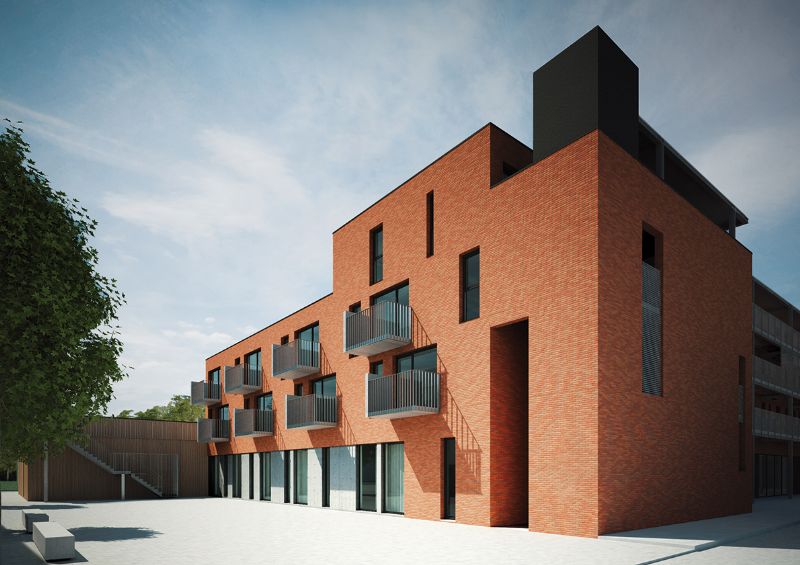 Het project kreeg een sobere, ritmische gevelopbouw in rood genuanceerde baksteen die qua kleur sterk aansluit aan de nabijgelegen kerk van Oostmalle. De in het zicht blijvende stalen constructie-elementen en wit plaatmateriaal als accent voor de toegang tot de woningen werken verfrissend. Met het realiseren van deze architecturaal boeiende site kiest Malle resoluut voor een vernieuwend sociaal beleid.