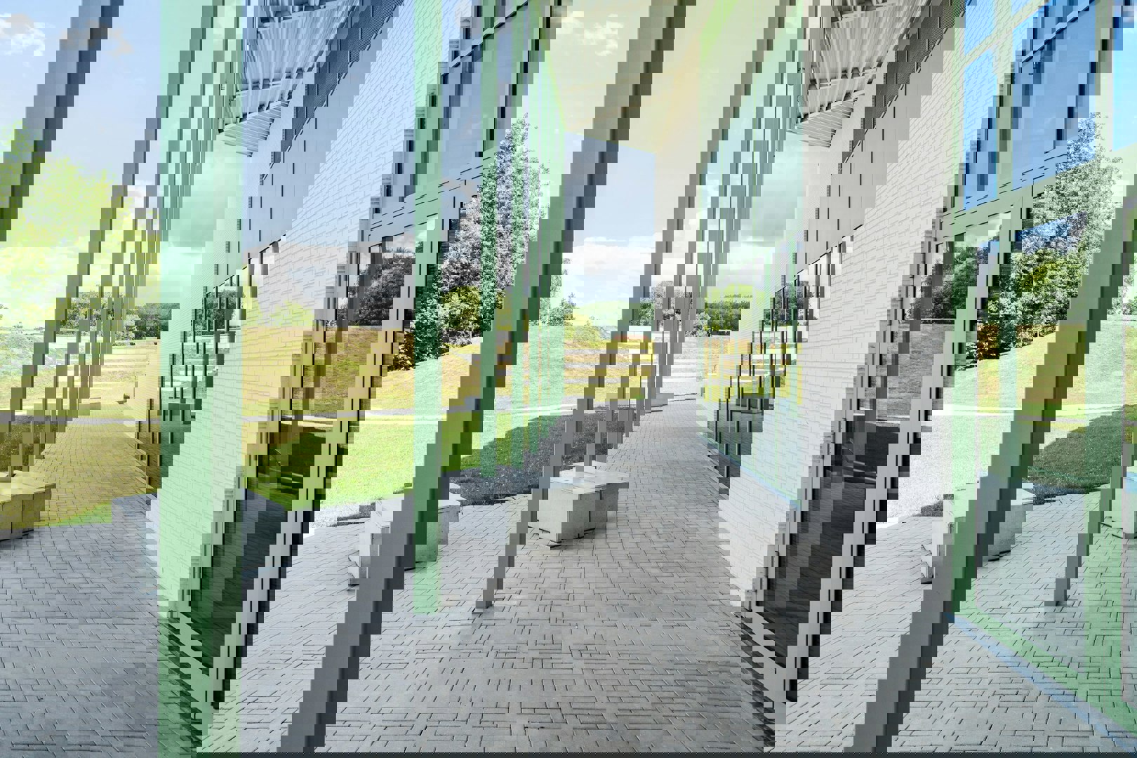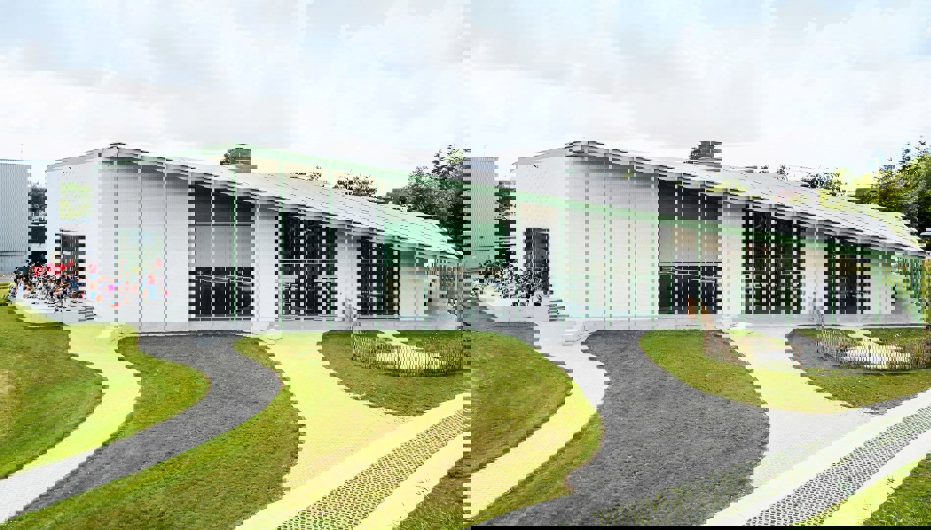 Duurzaamheid stond vanaf de eerste schets centraal. Het ontwerp doorliep een volledige TOTEM-analyse en voldoet aan het GRO-duurzaamheidskader van de Vlaamse overheid. Het gebouw is volledig fossielvrij, wordt verwarmd via geothermie en beschikt over een energiezuinig ventilatiesysteem dat in de grotere zalen een optimaal binnenklimaat garandeert. De meervoudige toegangen en korte verbindingen met fiets- en wandelroutes stimuleren duurzaam gebruik en beperken de afhankelijkheid van autoverkeer.