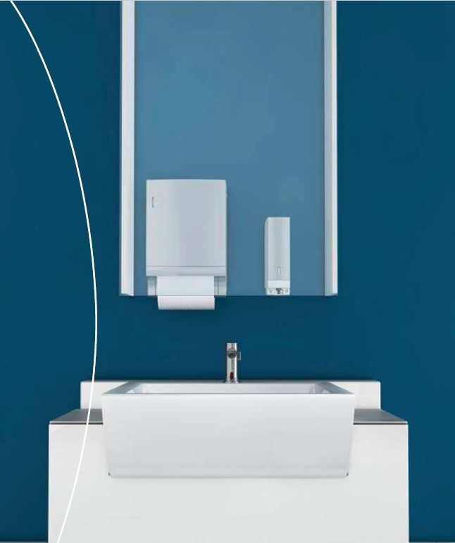 Door de automaat voor katoenrollen, papieren handdoekjes of zeepschuim dispenser achter een spiegel of in een kast te monteren, in combinatie met een geïntegreerde papiermand, kan het design van de wasruimte ongestoord blijven, zoals de ontwerper het bedoeld heeft. Tegelijk wordt met de ObjectLine perfect voldaan aan de hygiënische vereisten van een moderne wasruimte. De bezoeker herkent de bedieningselementen, maar wordt niet afgeleid van de werking van de wasruimte.