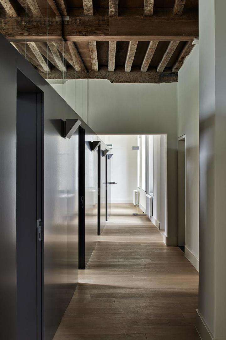 Door dat contrast ontstaat een heldere relatie tussen oud en nieuw. De uitbreiding profileert zich niet als een imitatie van het bestaande, maar als een hedendaagse laag die de kwaliteiten van het historische gebouw ondersteunt en zichtbaar maakt. Ze fungeert als een discrete coulisse waartegen het monument zich kan aftekenen.