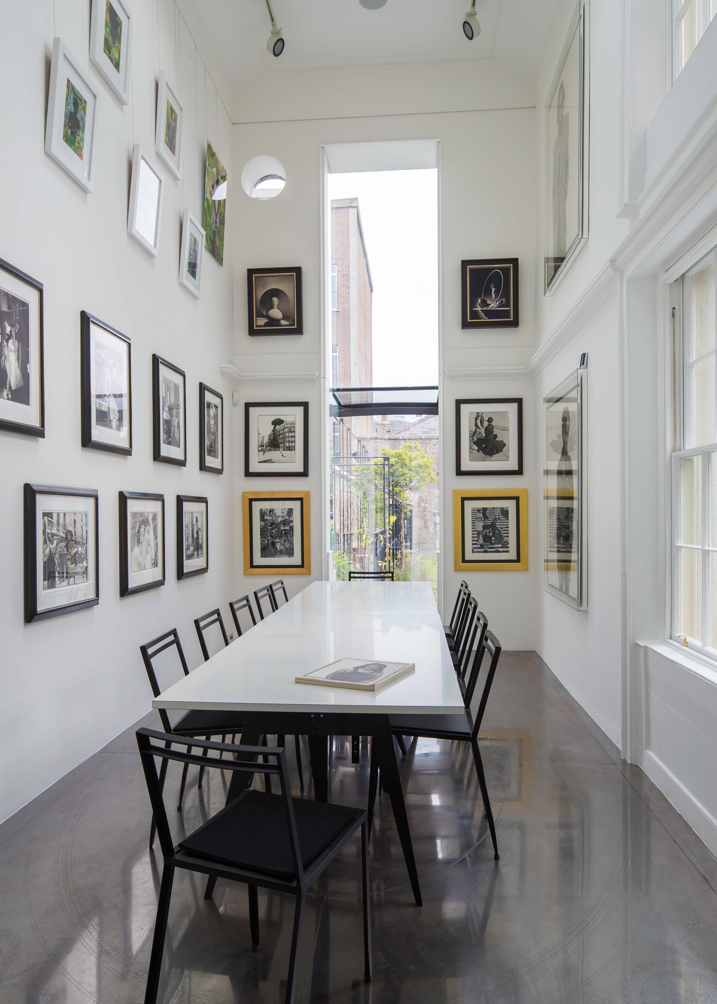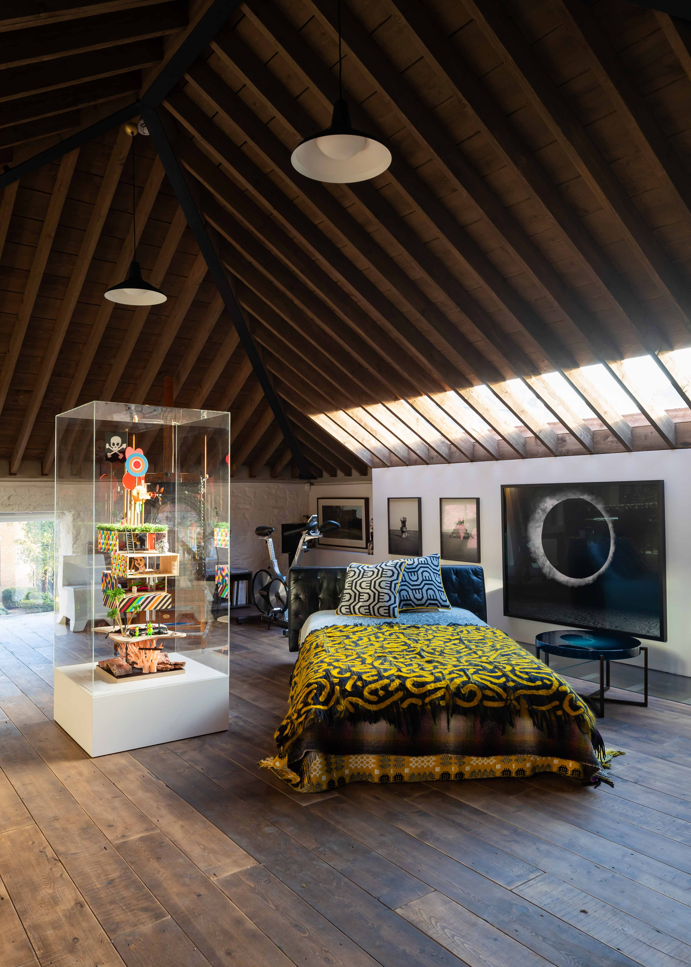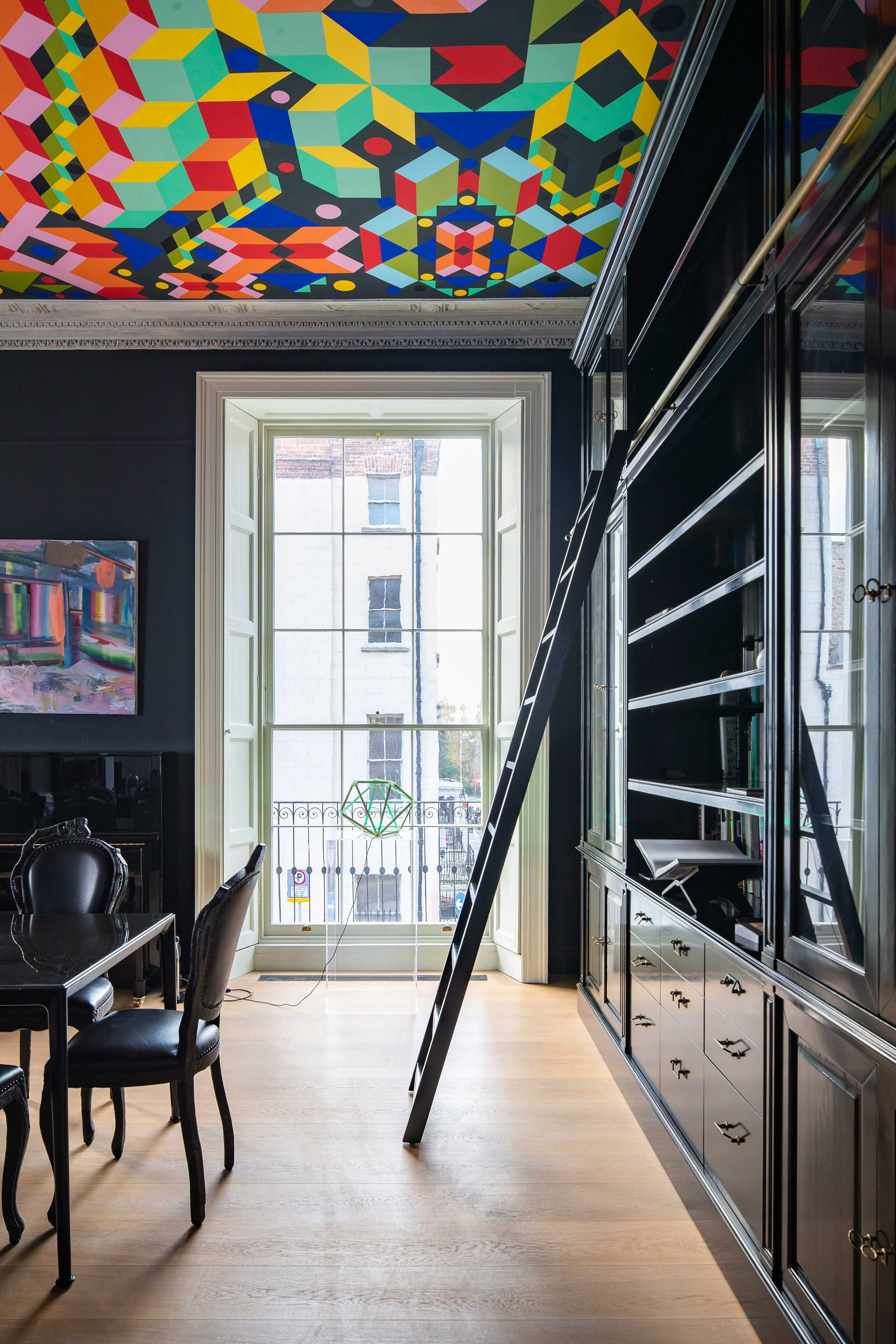 Daarnaast zit er een kunstzinnig kantje aan de woning. Zo stellen de bewoners hun werken tentoon in een ruimte aan de achterzijde van het huis. Die is van kop tot teen omgeven door ramen. Het creatieve aspect wordt doorgetrokken in de bibliotheek, waar het plafond werd beschilderd door kunstenaar Morag Myerscough.