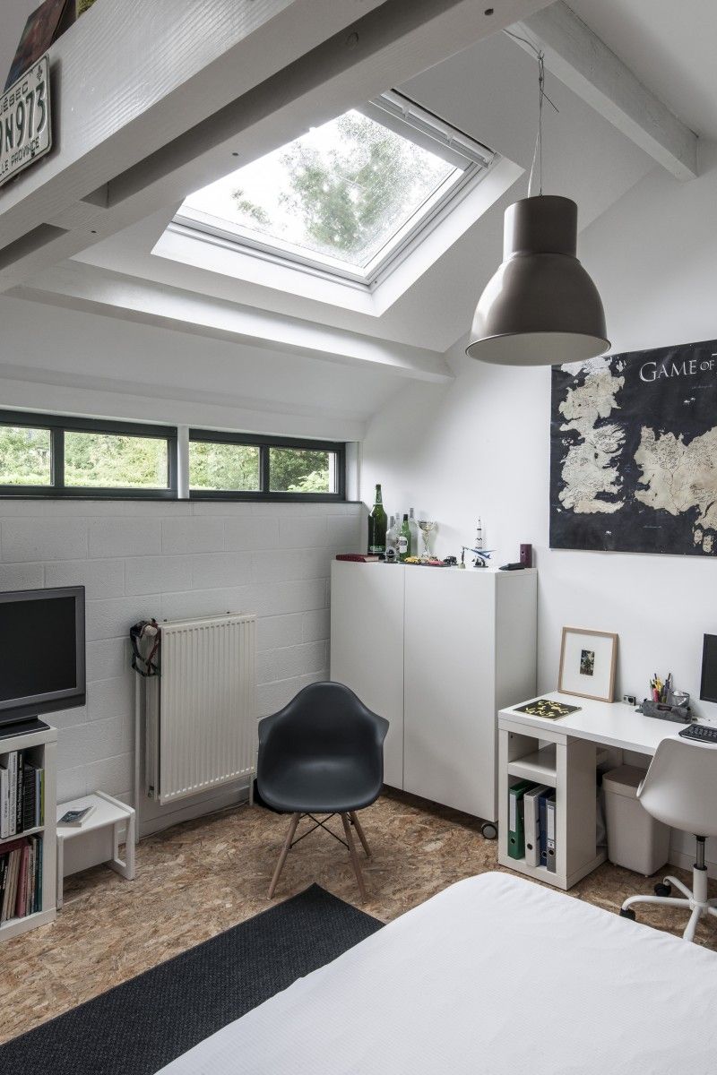 Zorgen voor extra natuurlijke lichtinval kan een kamer volledig nieuw leven inblazen. Met dit idee als vertrekpunt besloten Valérie en haar man om hun aangebouwde studio onder handen te nemen. De bestaande VELUX-dakvensters werden door grotere versies vervangen, zodat er veel meer daglicht binnenkomt.