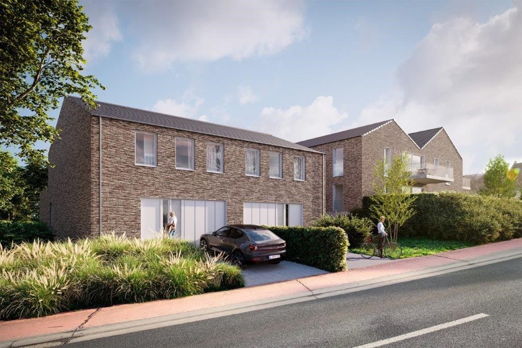 “De daken creëren een horizontale opdeling, waardoor het geheel minder massief oogt,” licht de projectontwikkelaar toe. De gevels zijn uitgevoerd in bruin/beige-grijs genuanceerde gevelsteen, gecombineerd met wit/lichtgrijs aluminium buitenschrijnwerk. Een hedendaagse uitstraling die toch respectvol aansluit bij de lokale bouwstijl. Kortom, het woonproject past perfect in de omgeving door zijn vorm en materiaalgebruik. Het geheel is mooi in harmonie met het omliggende landschap.