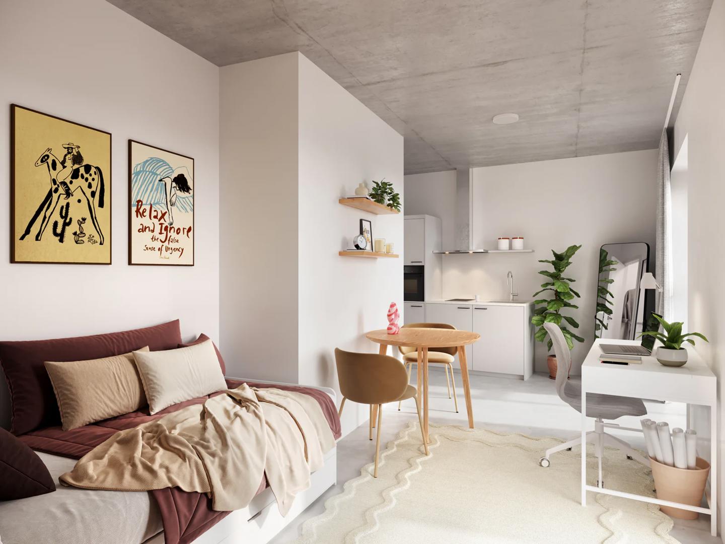 De residentie omvat 98 studentenstudio’s die verdeeld zijn over de verschillende verdiepingen. Op de begane grond bevinden zich studio's die specifiek zijn ingericht voor personen met een beperking, samen met 400 vierkante meter aan gemeenschappelijke ruimtes. Naast de inkomzone zijn er studie- en ontspanningsruimtes en een ruime fietsenstalling voorzien. De studio's op de hogere verdiepingen beschikken over veel lichtinval en zijn ontworpen als zelfstandige units waarin studenten kunnen wonen, koken en studeren.