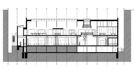 Doorsnede: een grote vide brengt licht in het atrium en verbindt de niveaus