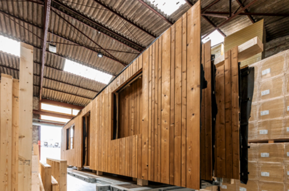 De prefab-elementen worden kant-en-klaar in bouwpakketten op de werf geleverd. Bij Carpentier kan dit zelfs inclusief de montage van de houten gevelbekleding. Prefab houtskeletbouw scheelt dus ook in transport van machines en losse materialen naar de bouwplaats, wat de duurzaamheid extra ten goede komt.
