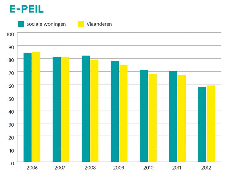 De sociale huisvestingsmaatschappijen anticiperen over het algemeen goed op de strenger wordende energie-eisen. Bij de cijfers van 2012 liggen de behaalde E-peilen zelfs heel wat lager dan wat toen vereist was. Maar met de invoering van E-peil 50 komen we echter tot een keerpunt, waarbij dit E-peil steeds moeilijker behaald zal kunnen worden. Het E-peil wordt de komende jaren verder aangescherpt tot het bijna-energieneutrale niveau E30 in 2021. Specifieke technieken zoals zonneboilers, ventilatiesystemen met warmteterugwinning of fotovoltaïsche panelen zullen hierdoor in veel gevallen noodzakelijk worden.