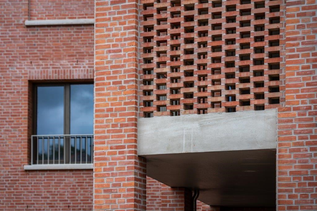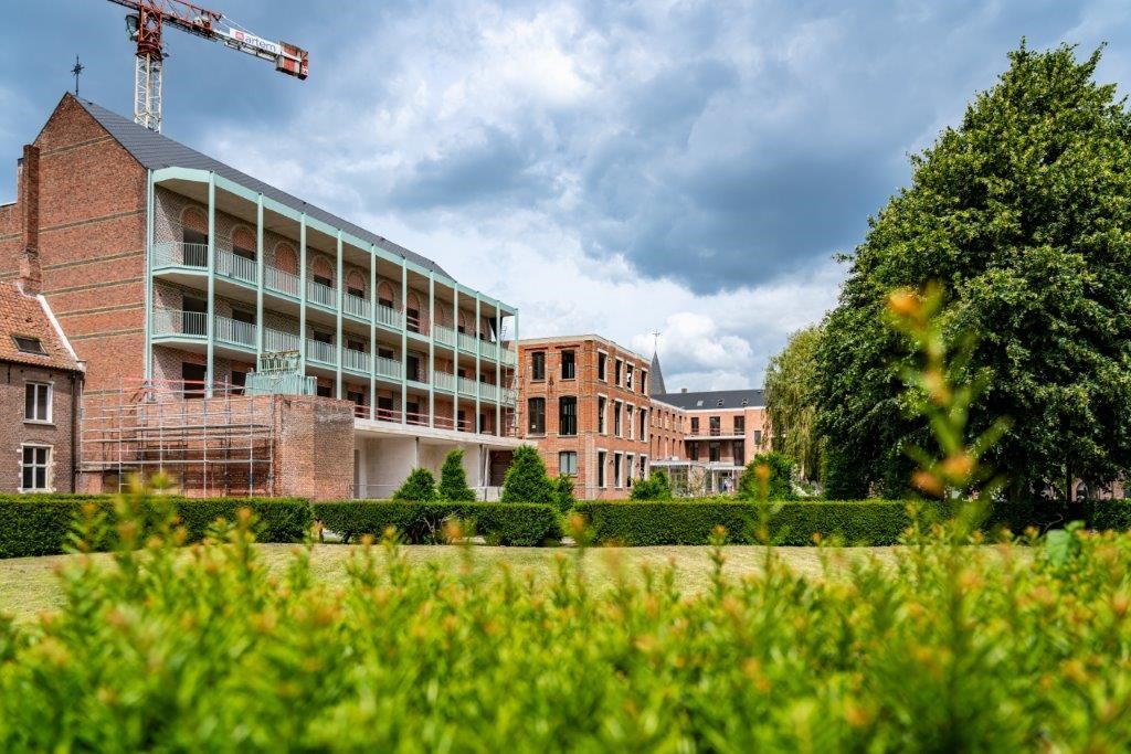 "Een van de voornaamste bouwtechnische uitdagingen was de combinatie van afbraak, gevelschoring en heropbouw. Dit vereiste een doordachte fasering om de stabiliteit te garanderen, vermits er op het gelijkvloers openingen moesten worden gemaakt in de gevels om de appartementen te kunnen realiseren, inclusief de integratie van nieuwe betonnen balken. Een delicate operatie die gelukkig probleemloos verlopen is. In ’Rector’ werkten we hoofdzakelijk met ter plaatse gestort beton en betonblokken om alles zo flexibel mogelijk ingepast te krijgen. In de overige gerenoveerde blokken en de nieuwbouwvolumes opteerden we dan weer voor een klassiekere opbouw met prefabbetonvloeren en binnenwanden in kalkzandsteen.”