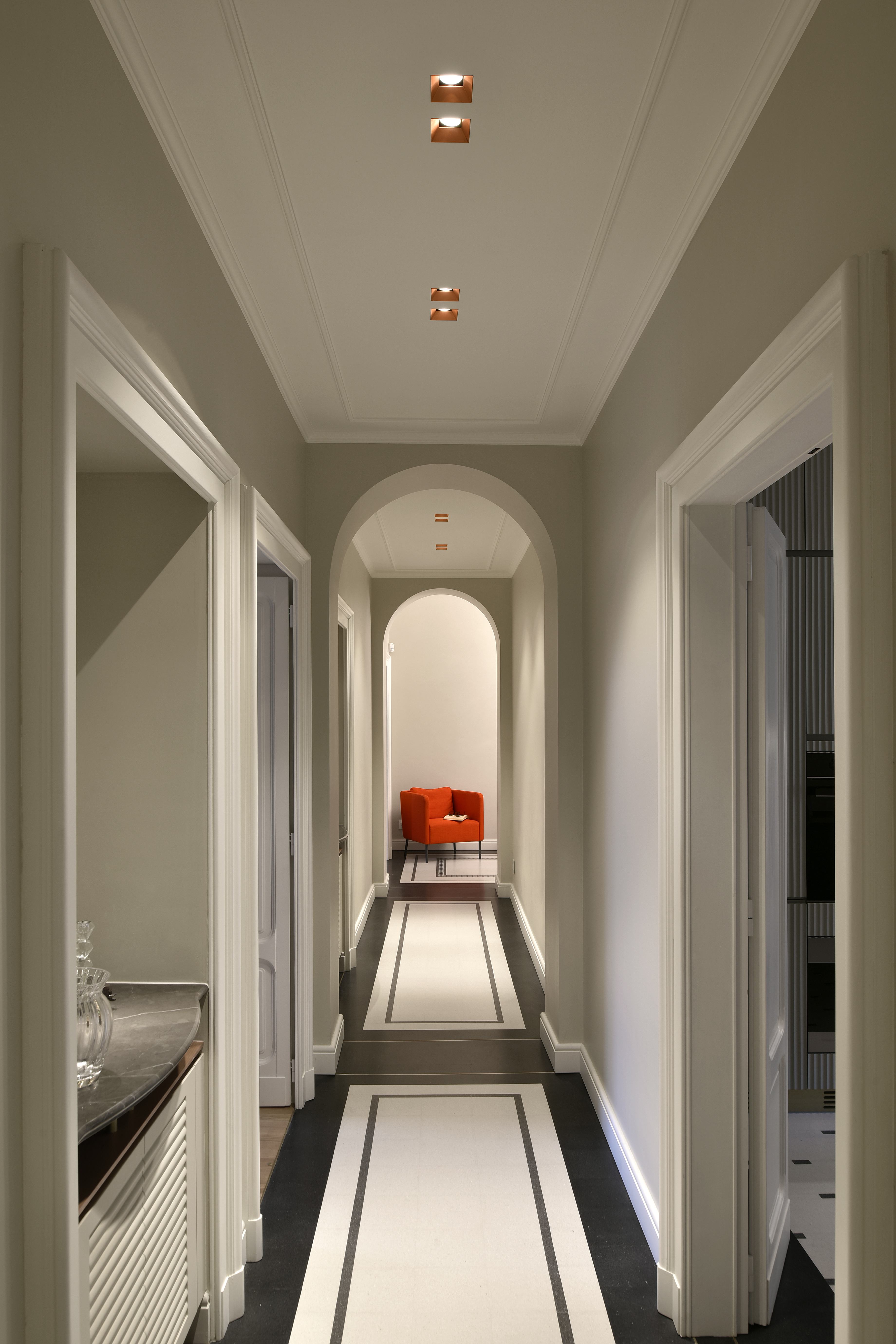 Bij de opstelling van een lichtplan houdt de lichtspecialist met heel wat factoren rekening. Niet enkel de grootte van de ruimtes, de indeling en de sfeer zijn van belang, ook de materialen en de kleur van de muren spelen een rol. Van zodra hij over deze info beschikt, kan hij starten. “Een kreon lichtspecialist begint steeds met lijnen van de ene ruimte naar de andere te trekken om verschillende lichtpunten met elkaar te verbinden. Die belijning vormt de eenheid van het lichtplan om een rustig lichteffect te creëren. Hij polst ook uitvoerig naar de noden van de eindgebruiker”, aldus Van Den Branden. Bovendien is de specialist op de hoogte van de laatste technieken en technologieën en is hij bekend met de bedrading en de installatie van de belichting, waardoor de afwerking van het project versneld kan worden.