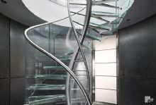 Toen EeStairs deze stalen en glazen trap maakte en installeerde voor het huis van een kunstliefhebber in Monaco, vormde de dubbele helixvorm een perfect contrast met de abstracte kunstwerken eromheen. De DNA-achtige helix gaat verder langs de bovenverdieping en stijgt naar de volledige hoogte van de kamer, eerder als een sculptuur.