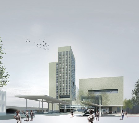 - Wat komt er in? Het gebouw bestaat uit twee delen: een arm in L-vorm en een toren. De arm krijgt een publieke functie en in de toren komen kantoren.