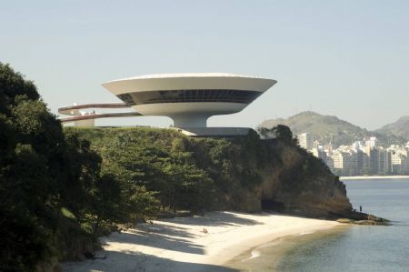 Oscar Niemeyer voor het Niteroi museum voor hedendaagse kunst in Rio de Janeiro