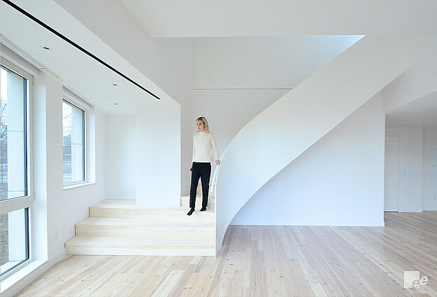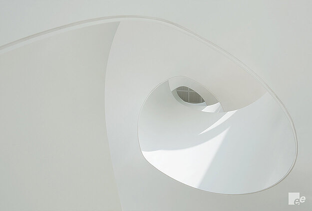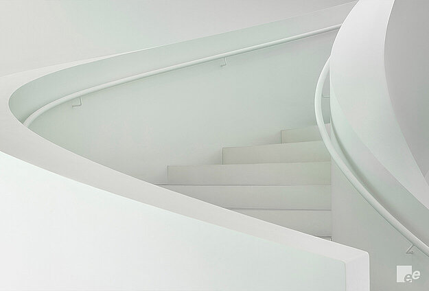 Als we qua design aan wit denken, beelden we vaak gladde rechtlijnige oppervlakken in, die geassocieerd worden met het minimalisme en het vroege modernisme. Denk aan het Rietveld Schröder Huis in Utrecht, of Le Corbusier's Villa Savoye, of de Armonia Apartments in Athene van de Britse architect John Pawson. Maar, natuurlijk, is er nog een extra dimensie. Als rondingen toegevoegd worden aan witte oppervlakken, creëren licht en schaduw verbazend sensuele effecten. En wanneer dit gebeurt, in trappen, verandert wit in WOW...