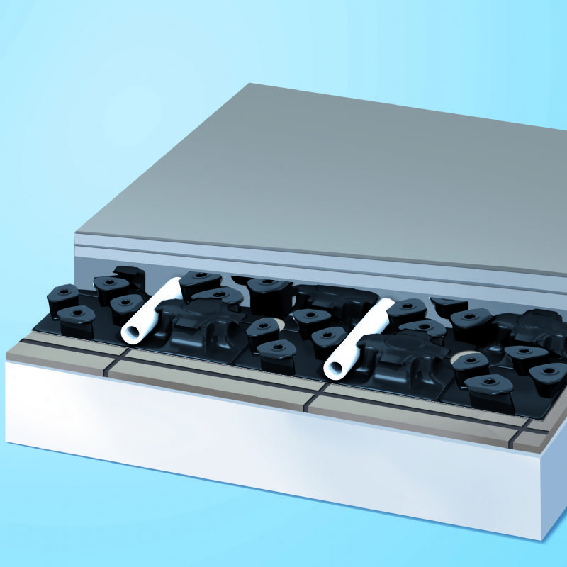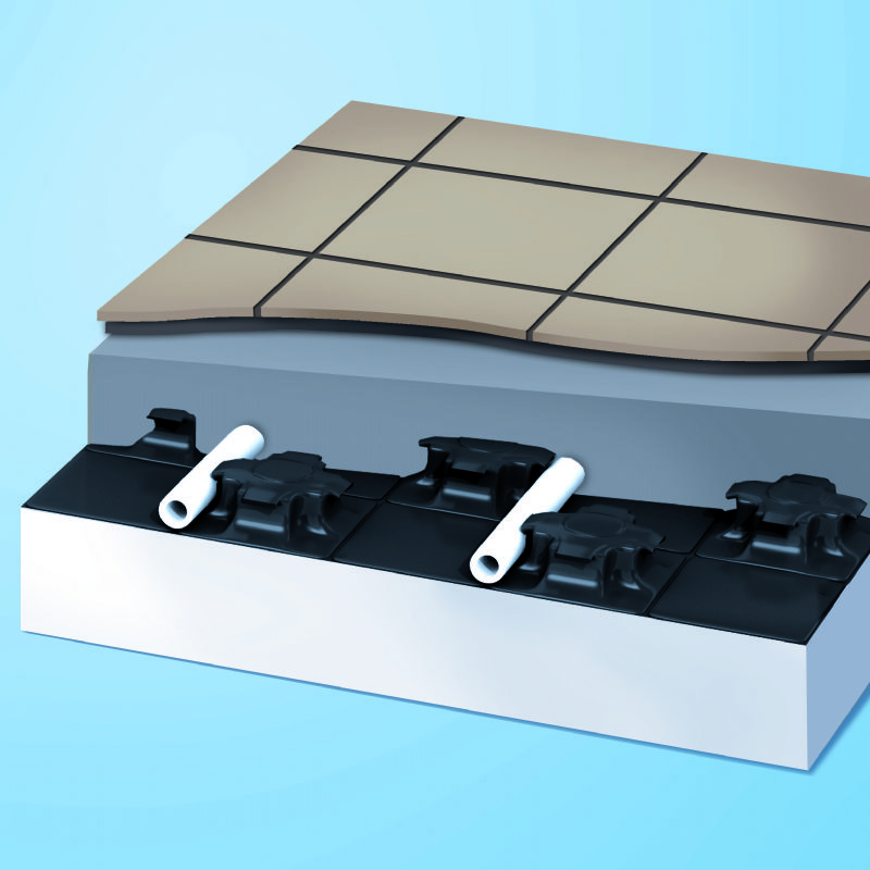 - isolatie-elementen en overlappende noppenplaat met 3 functies: leidingfixatie, isolatie en afdichting