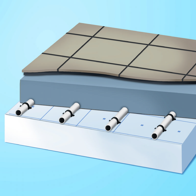 - direct op de aanwezige dek- of tegelvloer aan te brengen en aan te sluiten op bestaande systemen